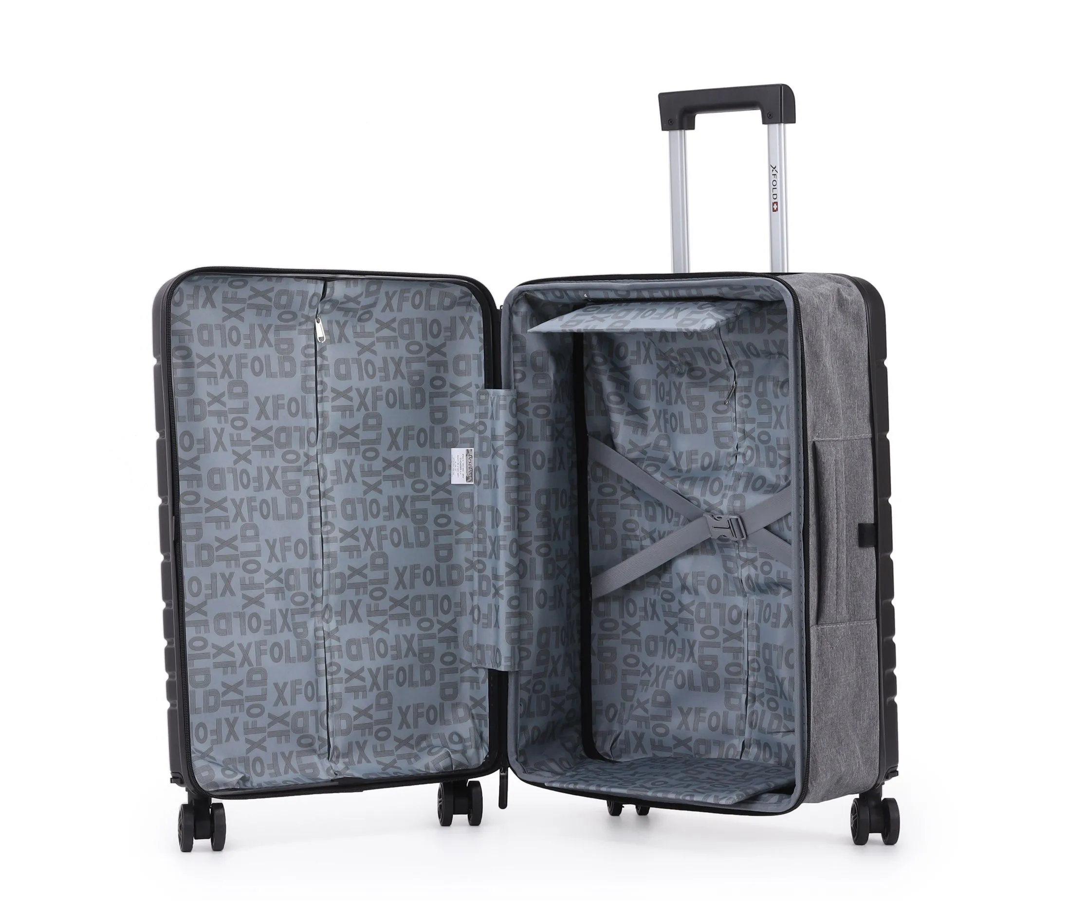 מזוודת טרולי 20" מתקפלת עליה למטוס דגם XFOLD מבית Swiss Voyager בצבע שחור