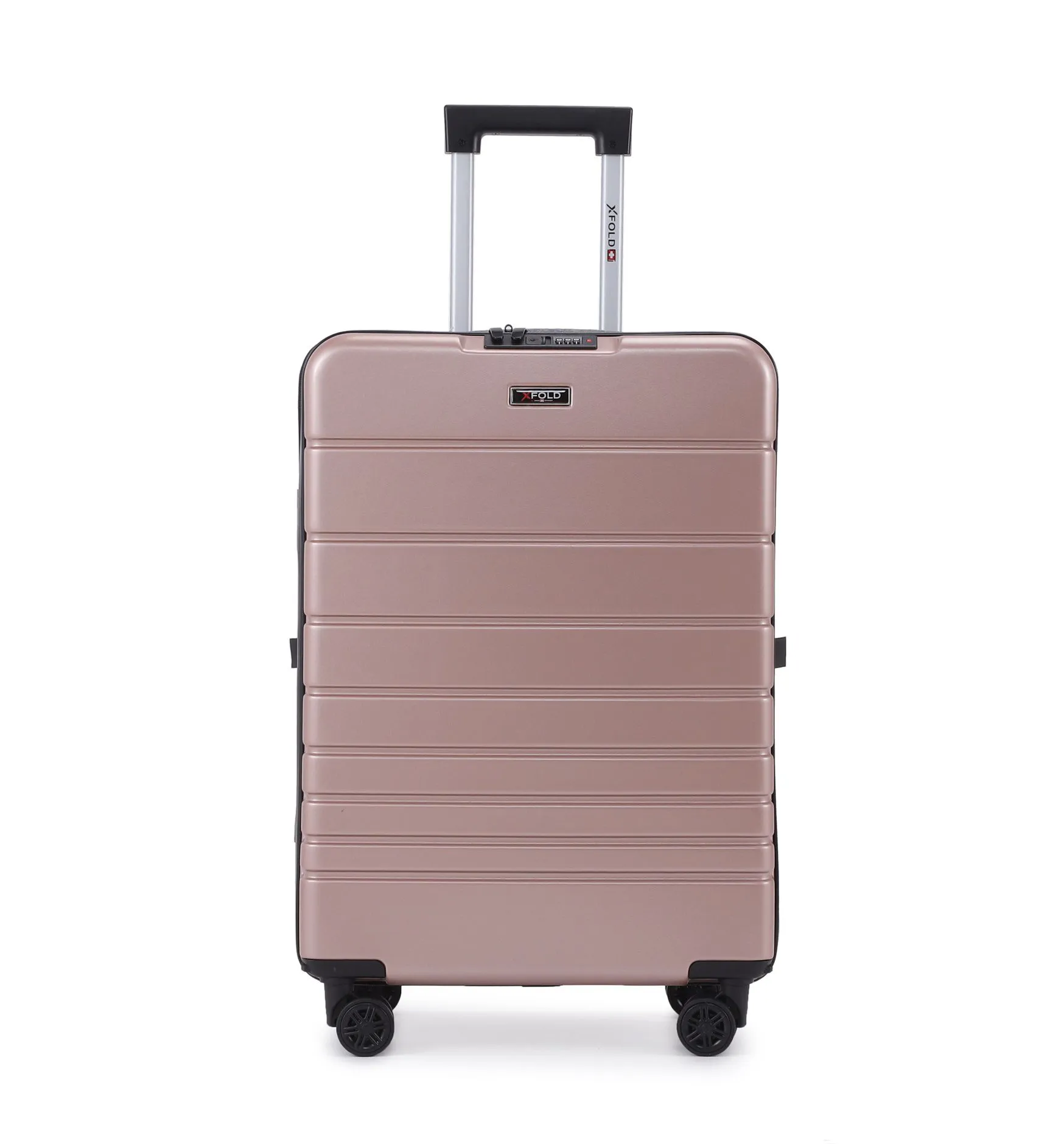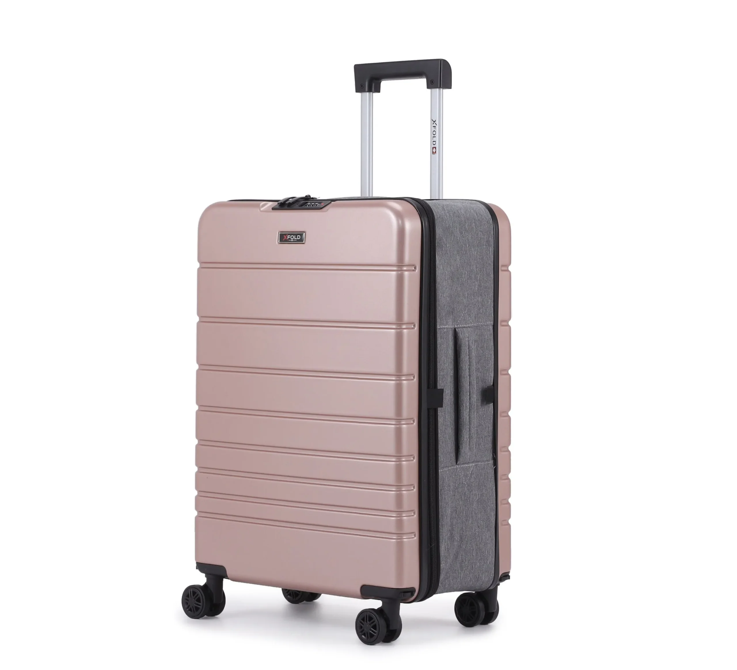 מזוודת טרולי 20" מתקפלת עליה למטוס דגם XFOLD מבית Swiss Voyager בצבע רוז גולד