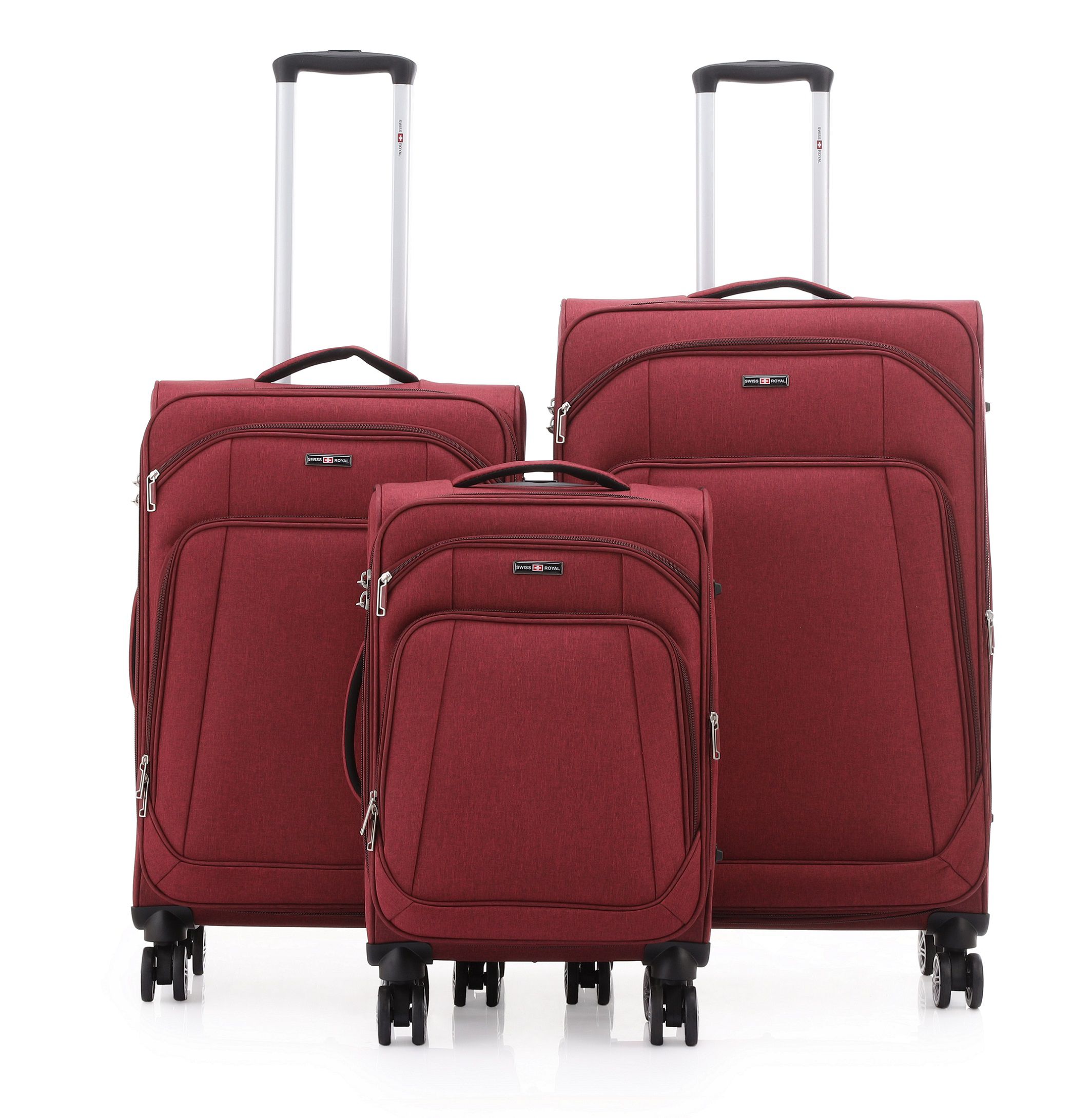 סט מזוודות בד יוקרתי 3 יח' 28| 24|20 Swiss Royal Tokyo בנפח מוגדל צבע בורדו