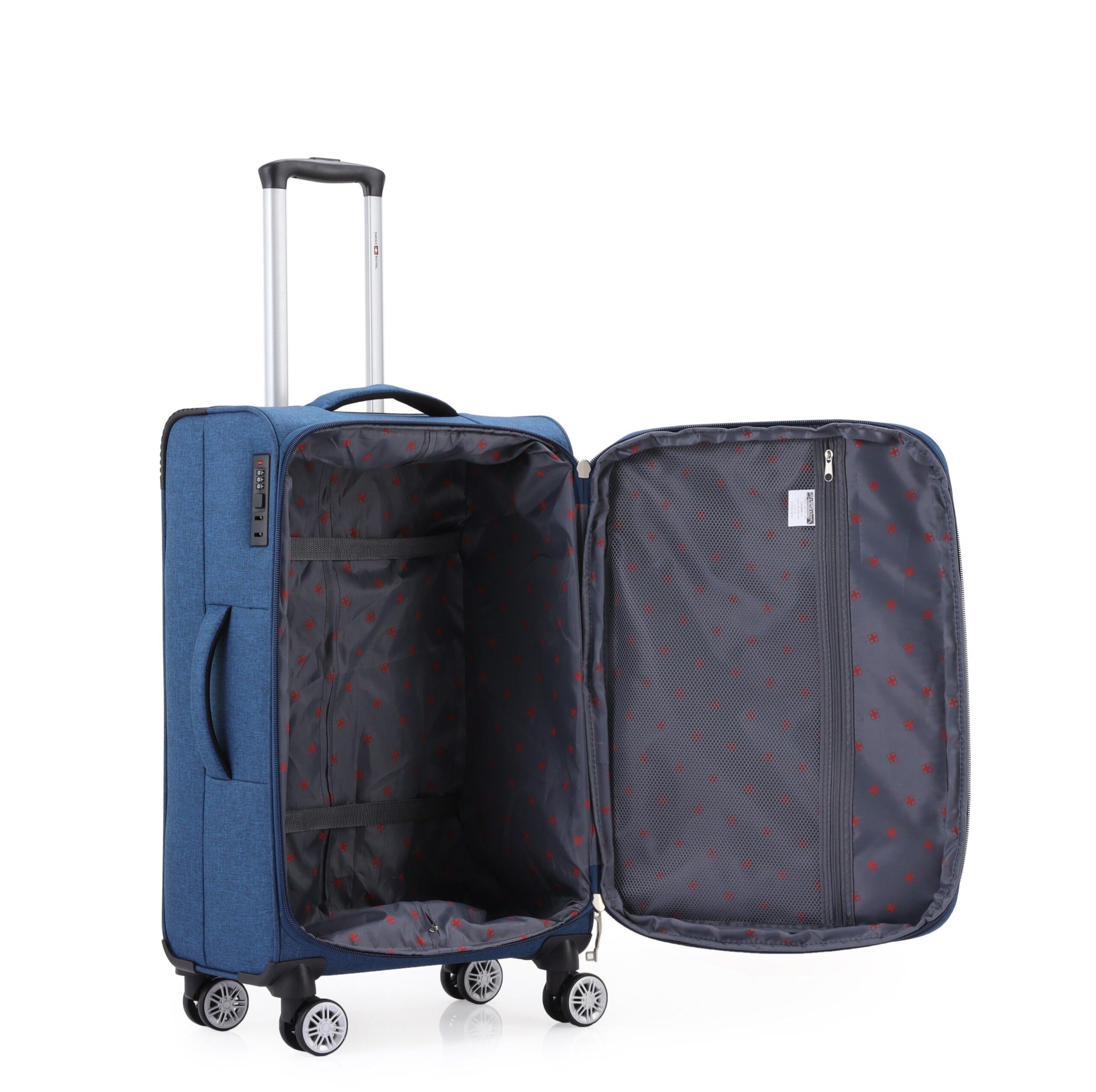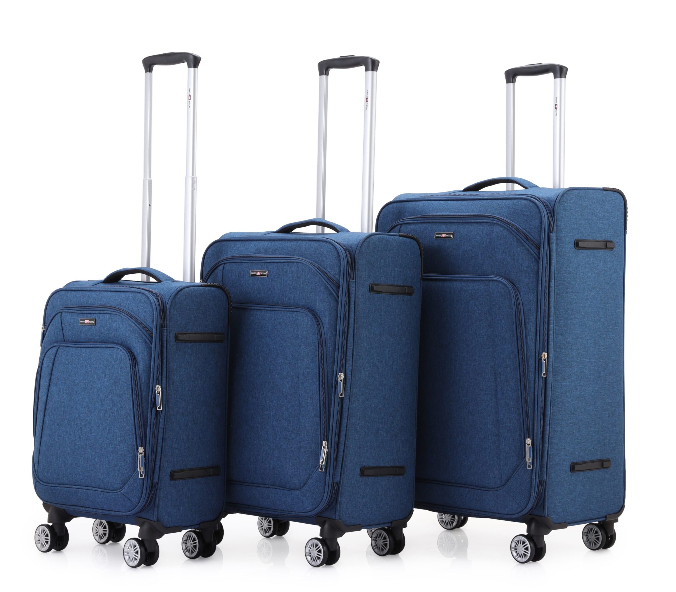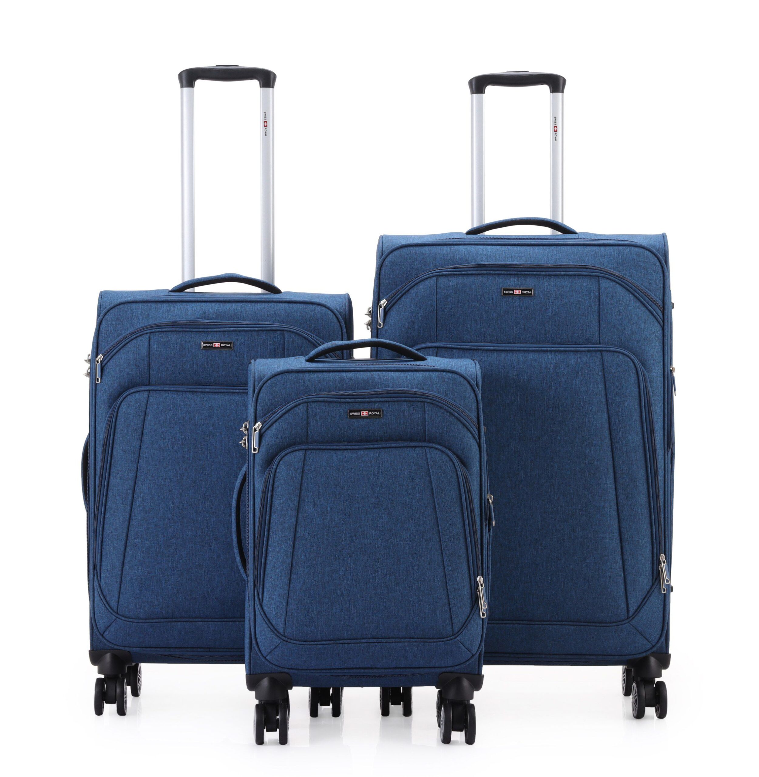 סט סט מזוודות בד יוקרתי 3 יח' 28| 24|20 Swiss Royal Tokyo בנפח מוגדל צבע ג'ינס משלב עמידות גבוהה, עיצוב אלגנטי ונוחות נסיעה יומיומית. מותג Swiss Royal ידוע באיכות האמינה והקפדה על פרטים. סדרת Tokyo תוכננה לניידות חלקה ושקטה.