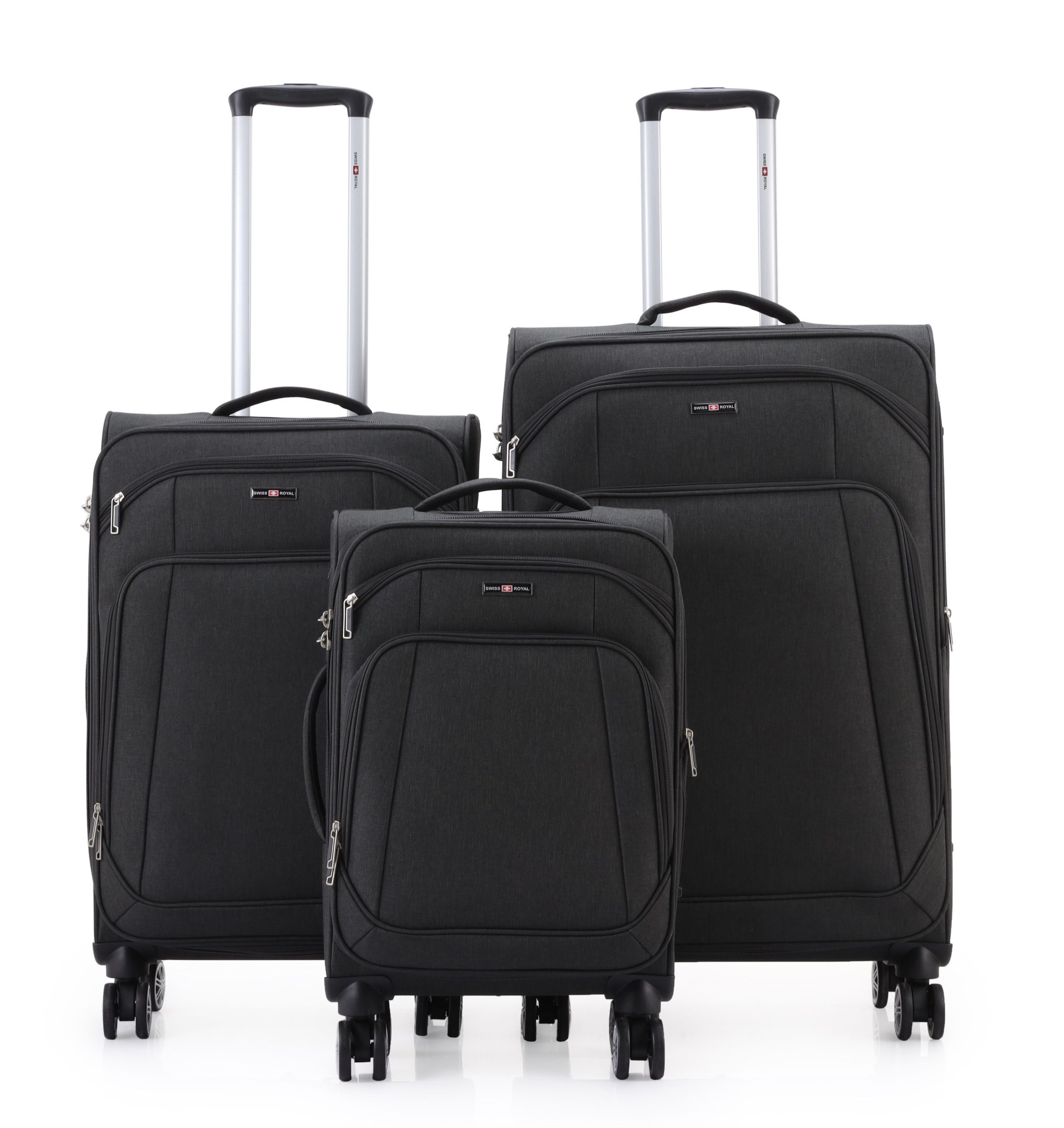 סט מזוודות בד יוקרתי 3 יח' 28| 24|20 Swiss Royal Tokyo בנפח מוגדל צבע שחור מלאנז'
