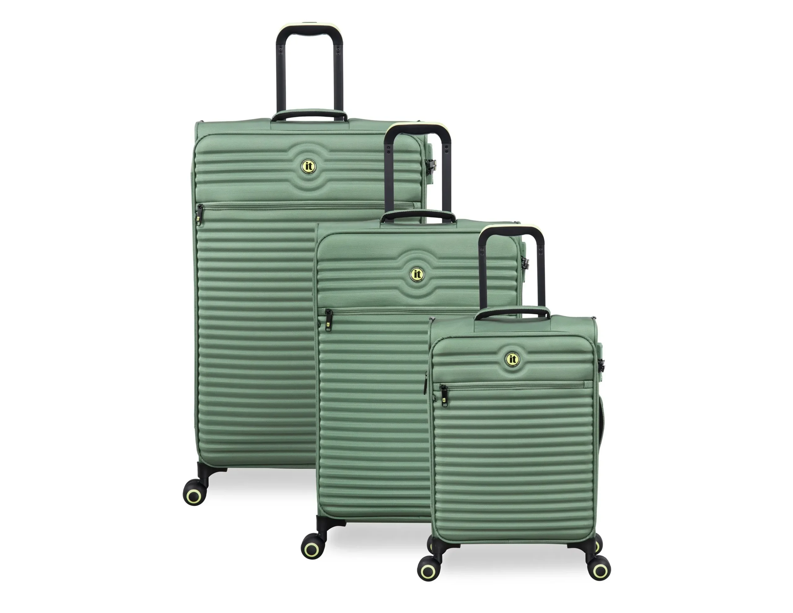 סט מזוודות בד קלות 3 יח' 30/25/20 מבית IT Luggage דגם CIRCULATOR בצבע ירוק טבעי