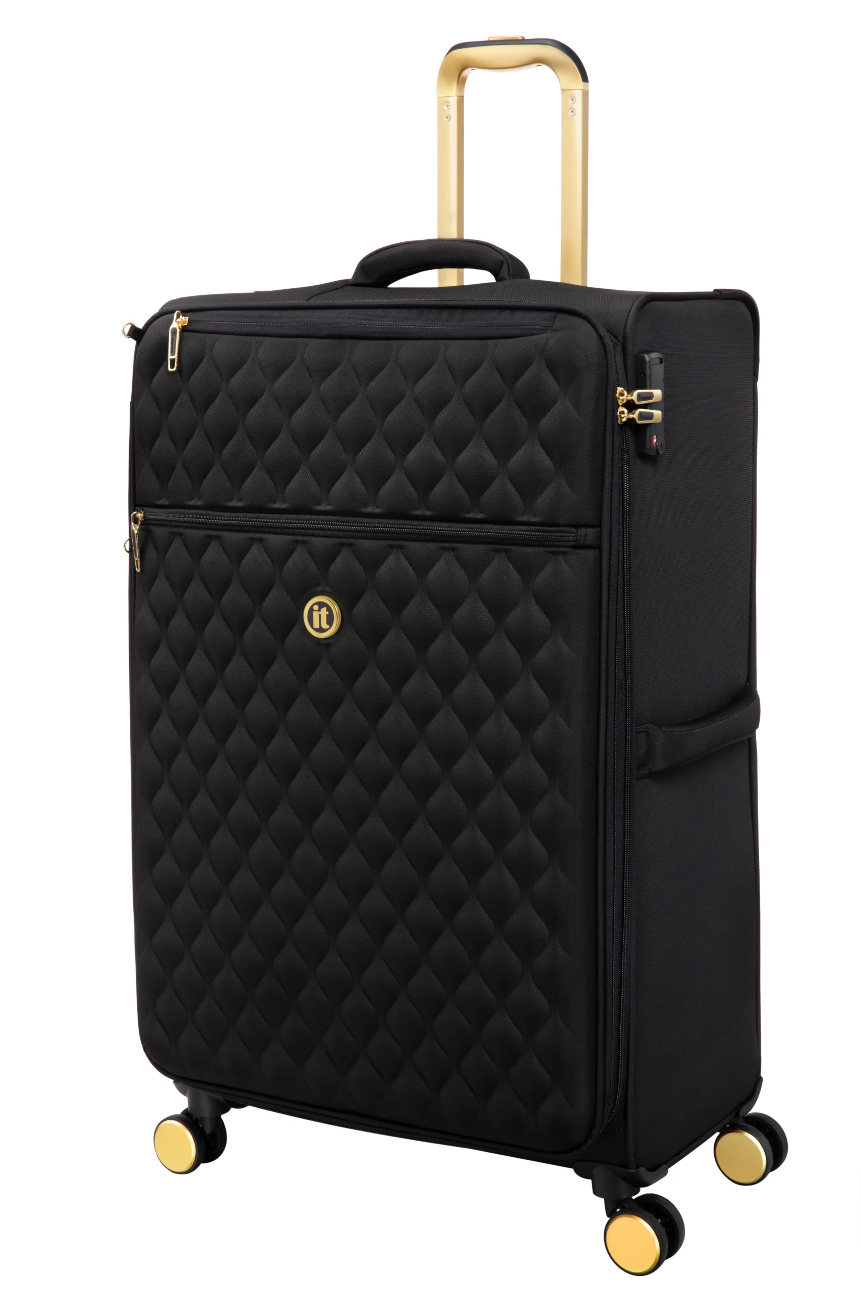סט המזוודות GLIMMERING מבית IT Luggage הוא סט מזוודות בד קלות במיוחד, בעיצוב יוקרתי עם דגש על פונקציונליות ונוחות. כל אחת מהמזוודות – עלייה למטוס, בינונית וגדולה – מצוידת בפאנל קדמי מרופד בתפרי קווילט אופנתיים, ורכיבים מוזהבים המעניקים מראה עשיר ויוקרתי.