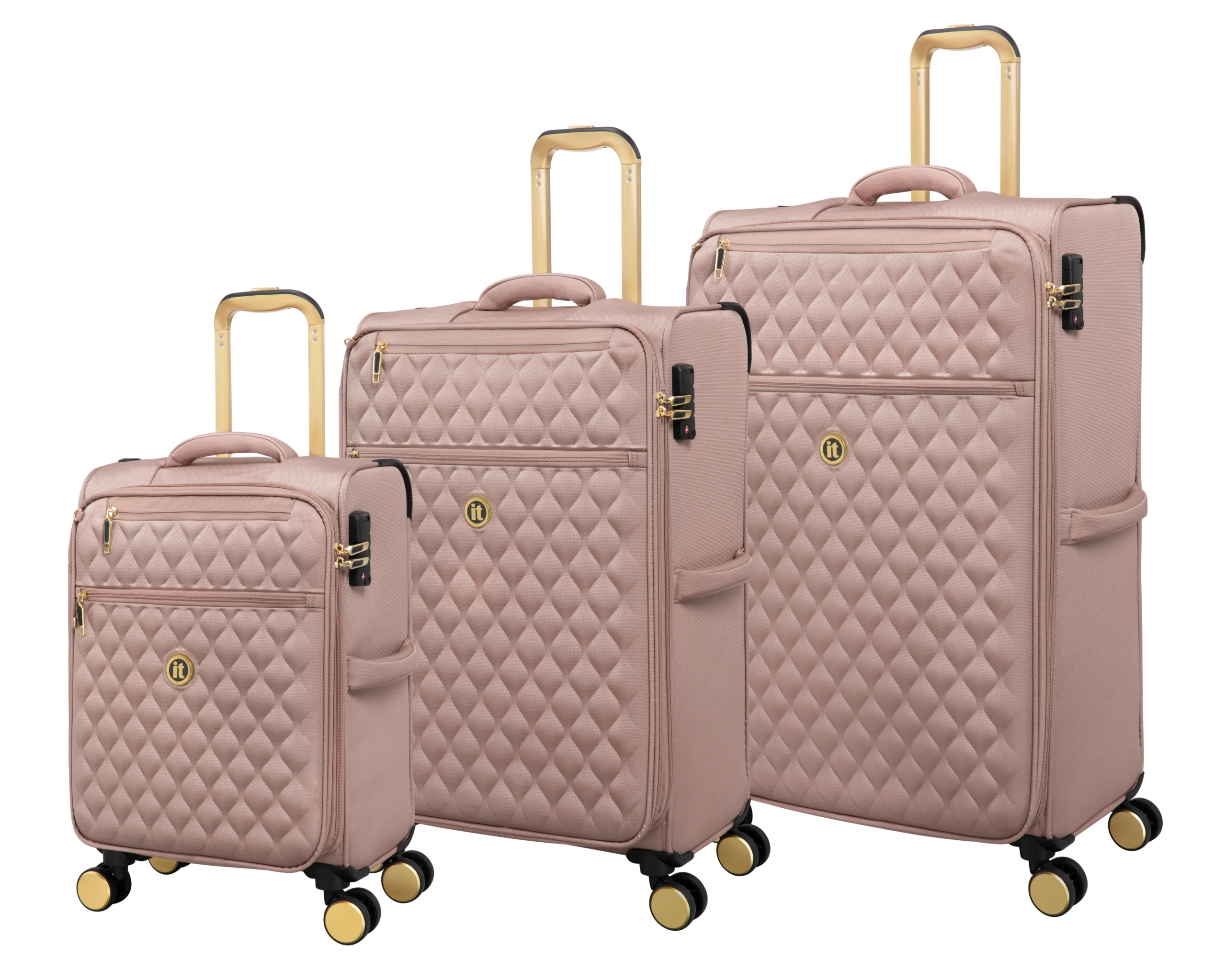 סט מזוודות בד קלות 3 יח' 30/25/20 מבית IT Luggage דגם GLIMMERING בצבע ורוד מוזהב
