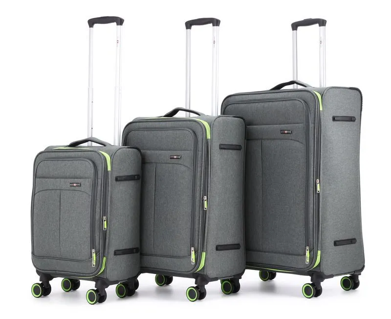 סט מזוודות בד 3 יח' 28| 24|20 Swiss Royal Brooklyn נפח מוגדל צבע אפור שילוב ירוק