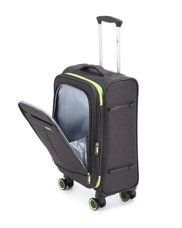 סט מזוודות בד 3 יח' 28| 24|20 Swiss Royal Brooklyn נפח מוגדל צבע שחור מלאנז' שילוב ירוק