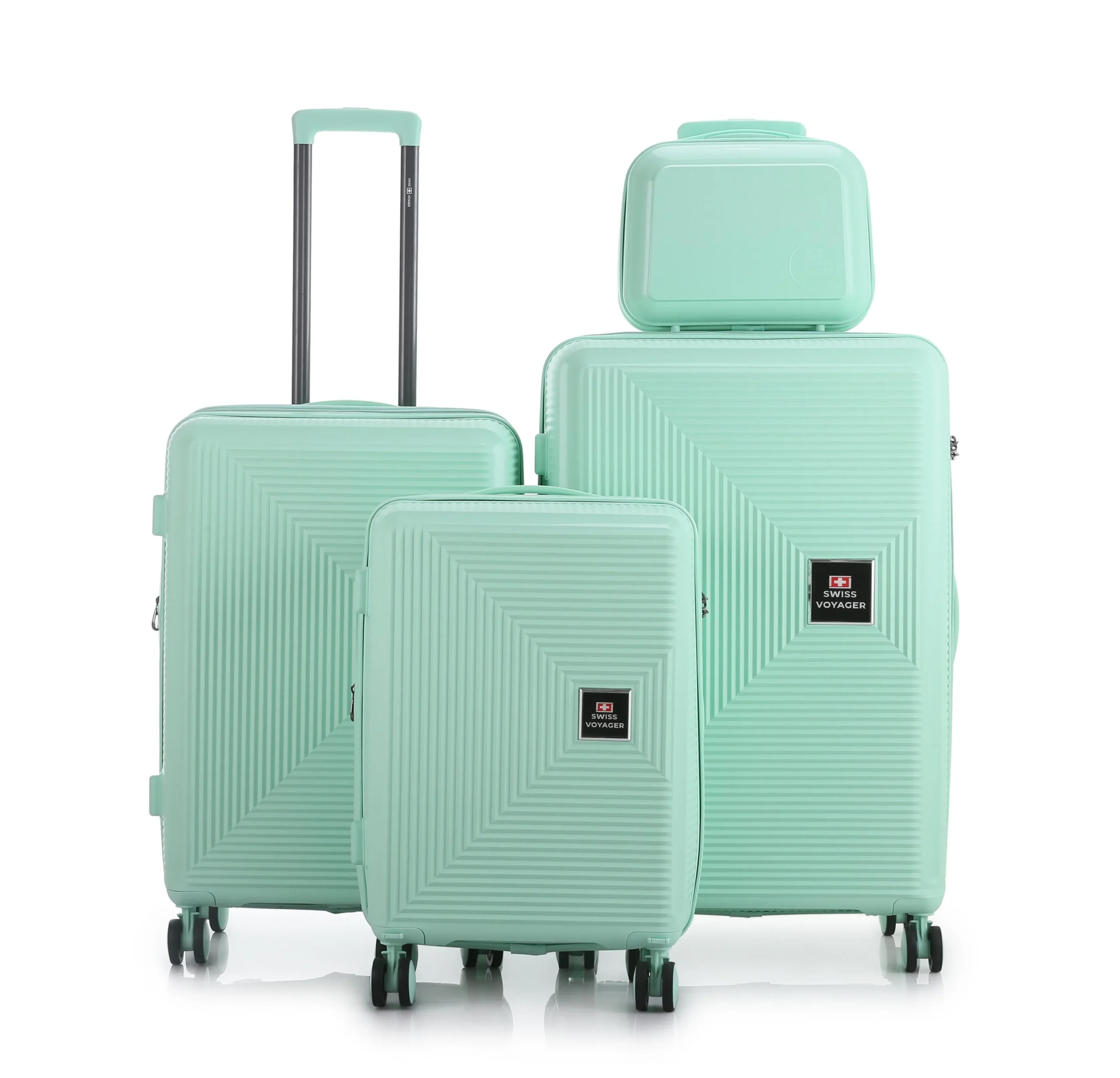 סט מזוודות קשיחות בלתי שבירות במגוון צבעים 20/26/30 אינץ' Swiss Boston – תיק איפור במתנה בצבע מנטה