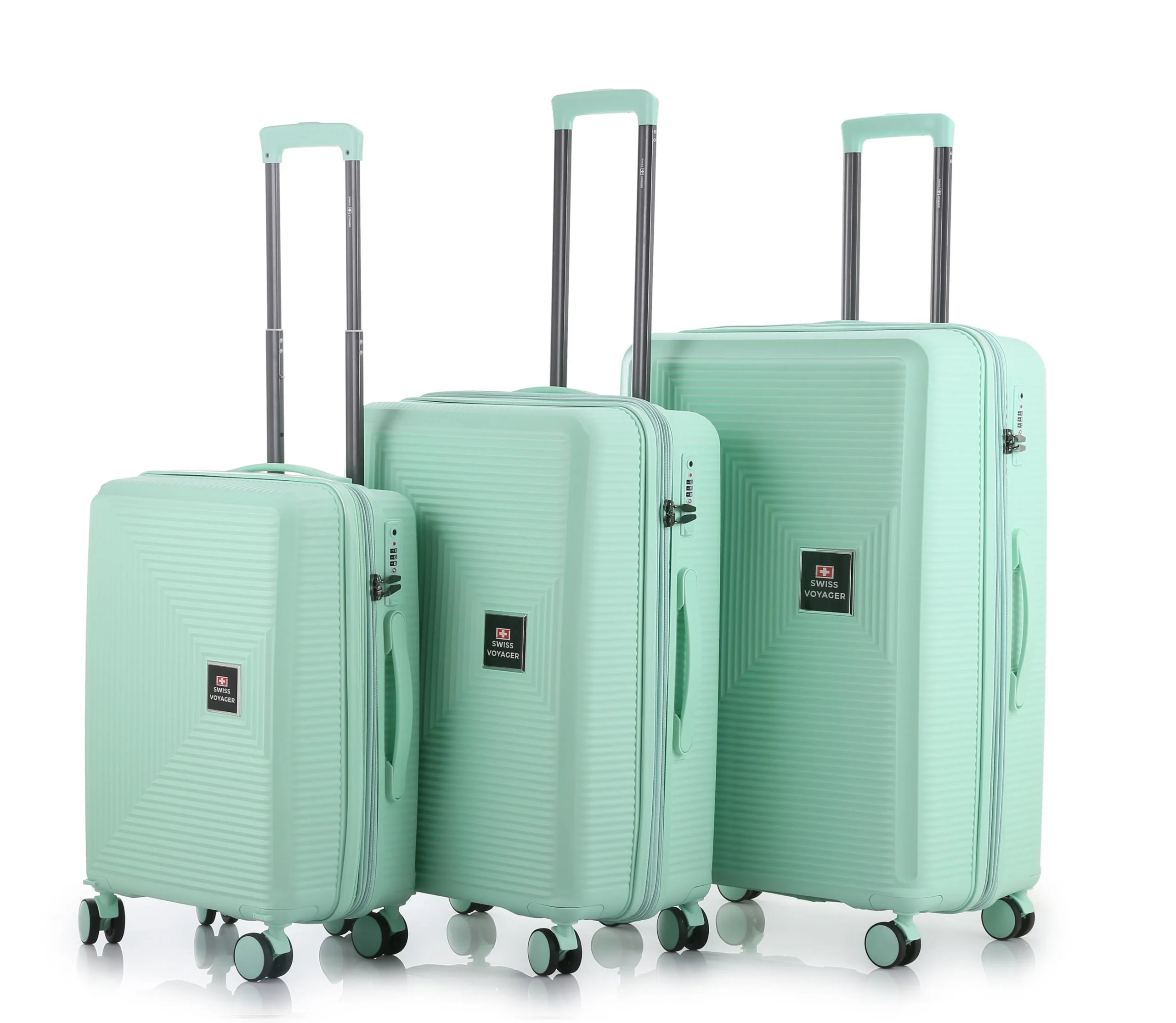 – סט מזוודות קשיחות SwissVoyager דגם Neo Boston במידות 20/26/30 אינץ' עשויות מפוליפרופילן, החומר הכי חזק בתחום!