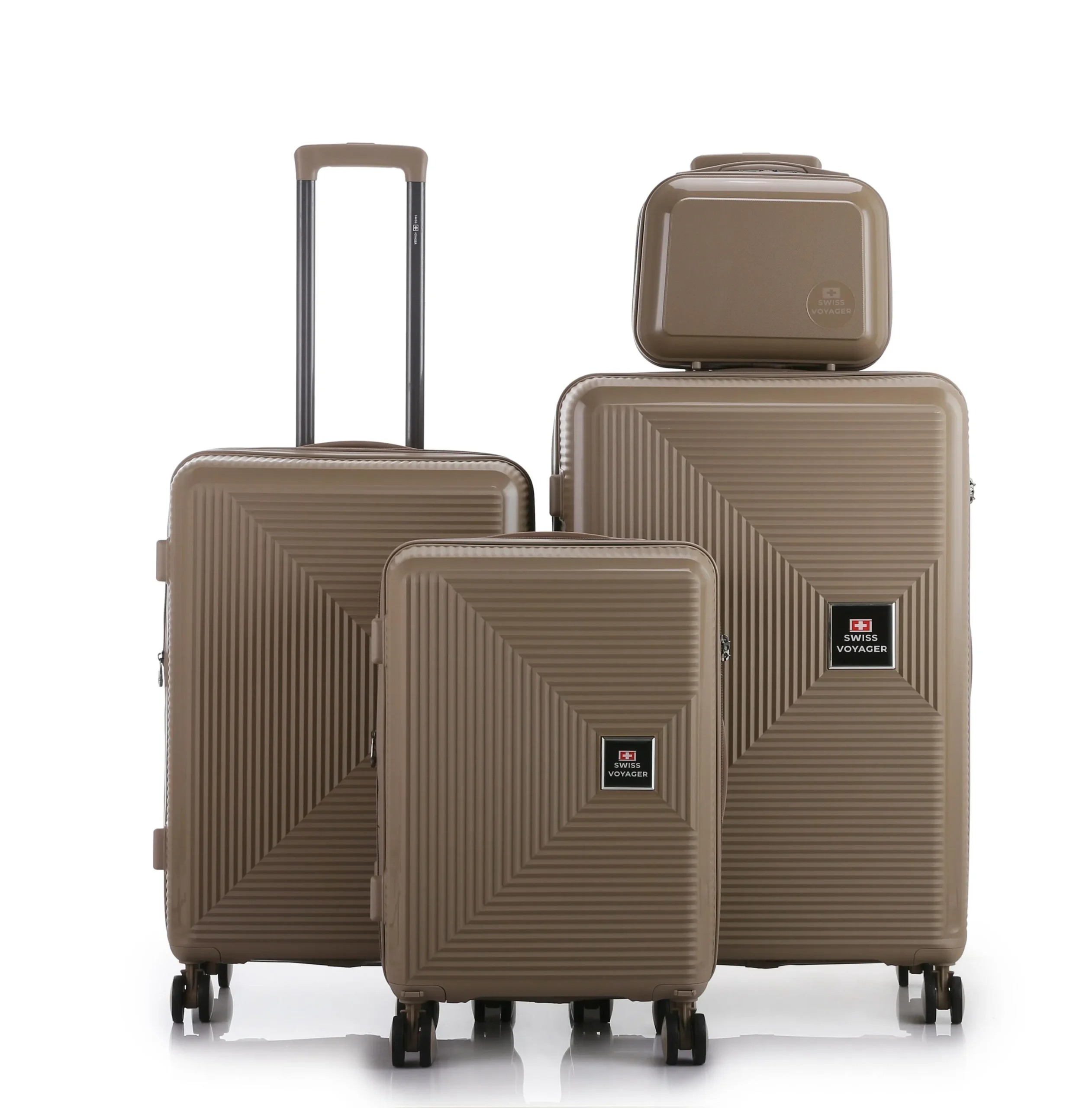 סט מזוודות קשיחות בלתי שבירות במגוון צבעים 20/26/30 אינץ' Swiss Boston – תיק איפור במתנה בצבע שמפנייה