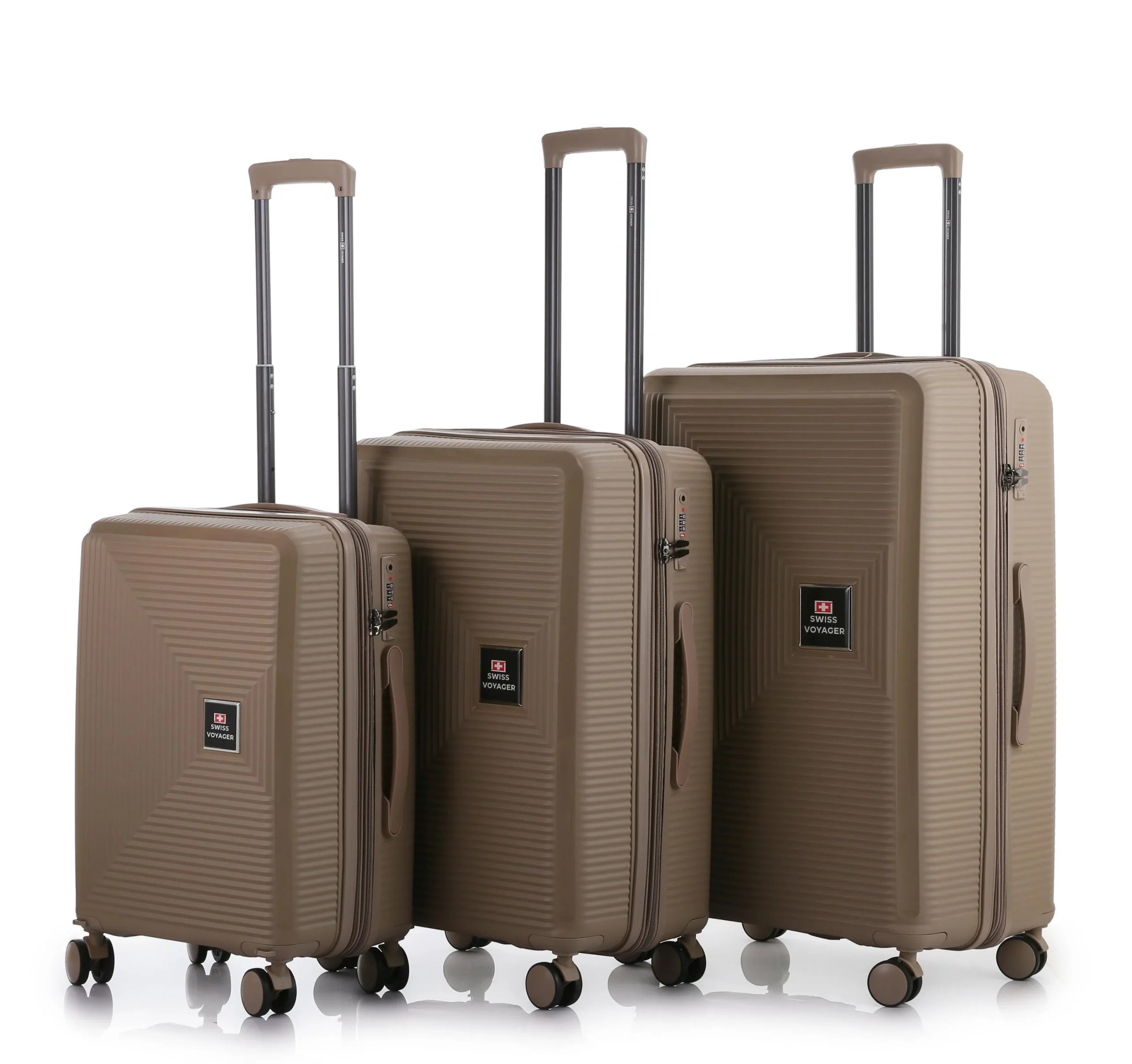– סט מזוודות קשיחות SwissVoyager דגם Neo Boston במידות 20/26/30 אינץ' עשויות מפוליפרופילן, החומר הכי חזק בתחום!