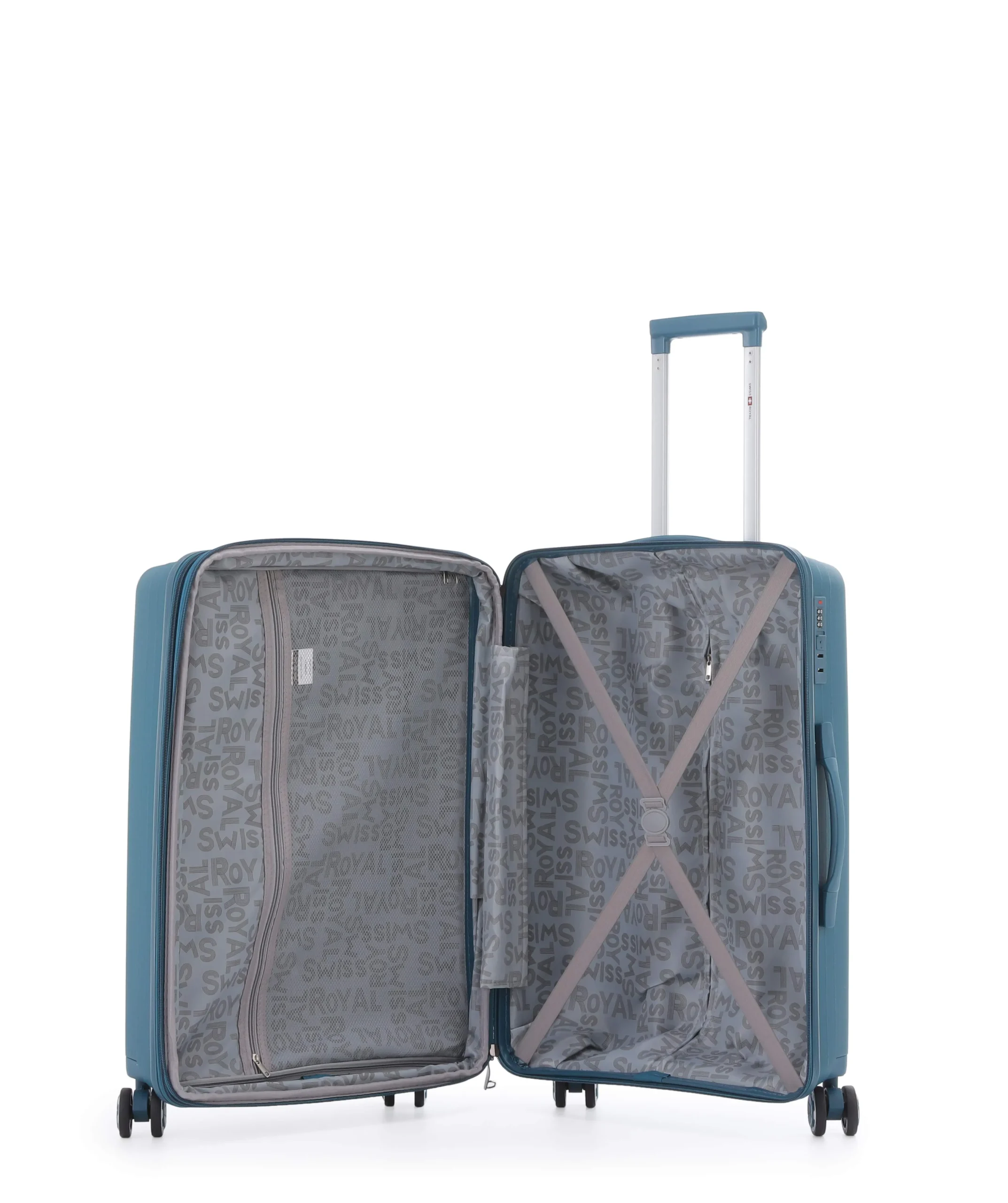 סט מזוודות קשיחות בלתי שבירות 20/24/28 אינץ' Swiss Royal Porto – תיק איפור במתנה צבע ג'ינס