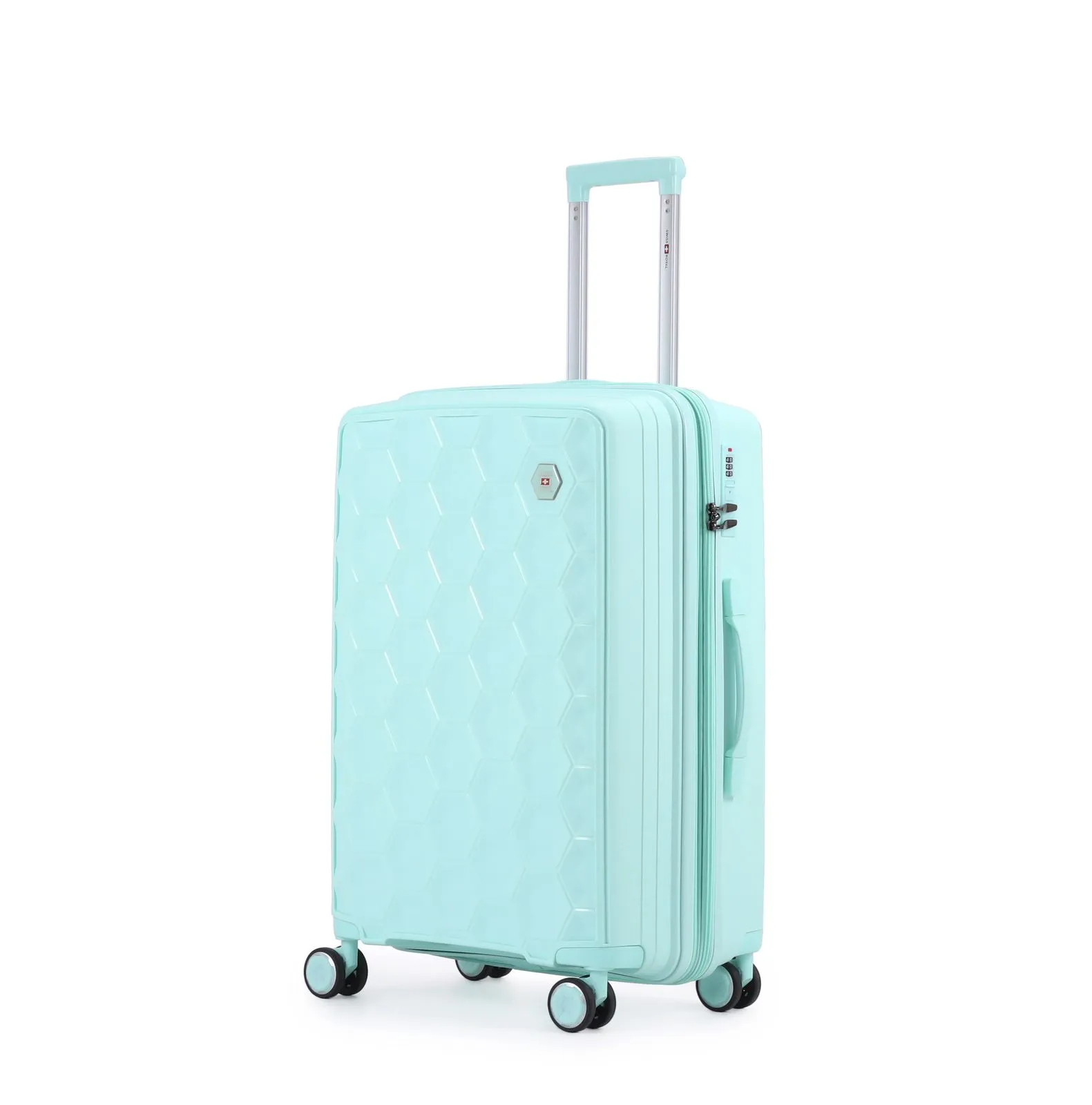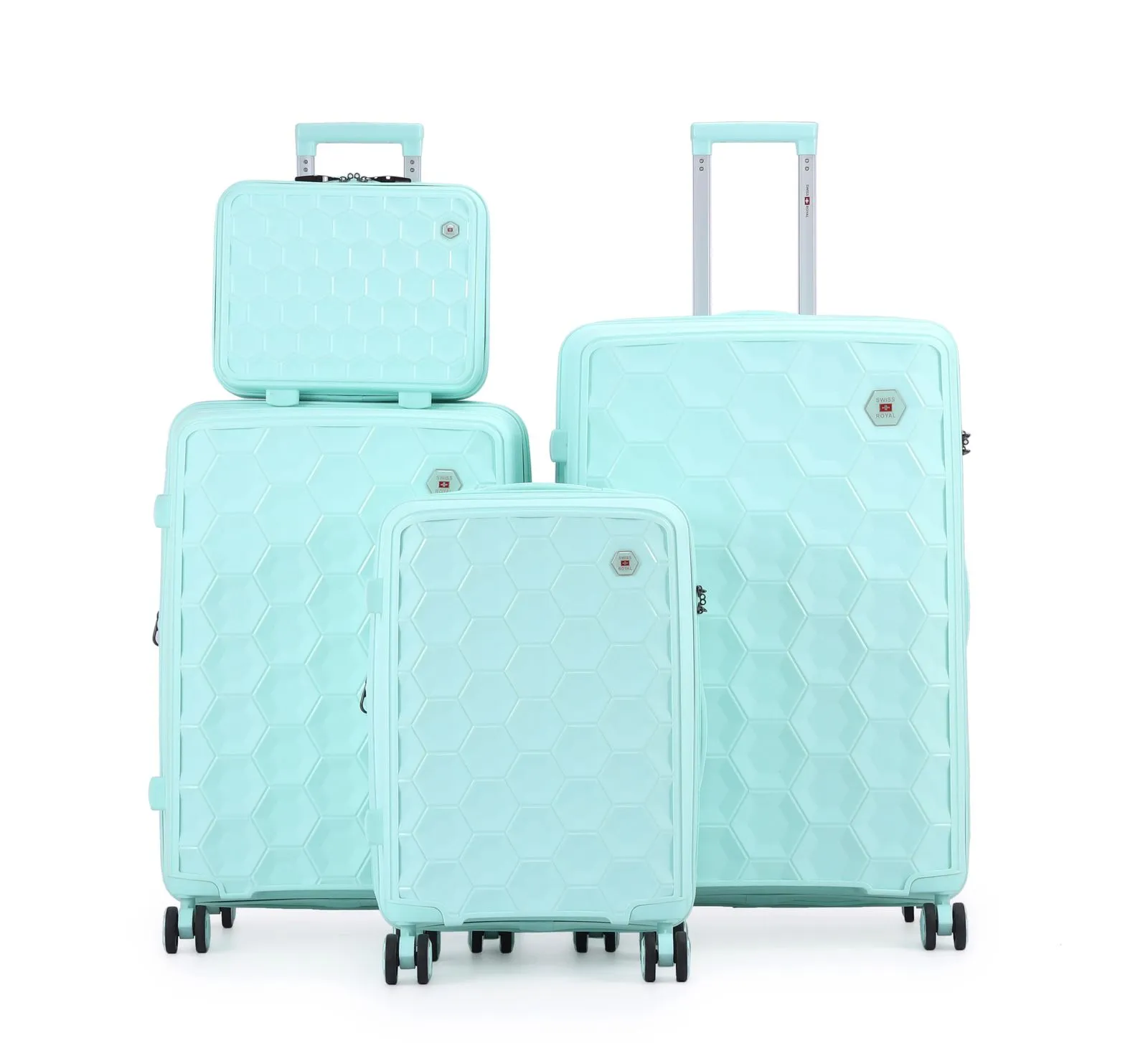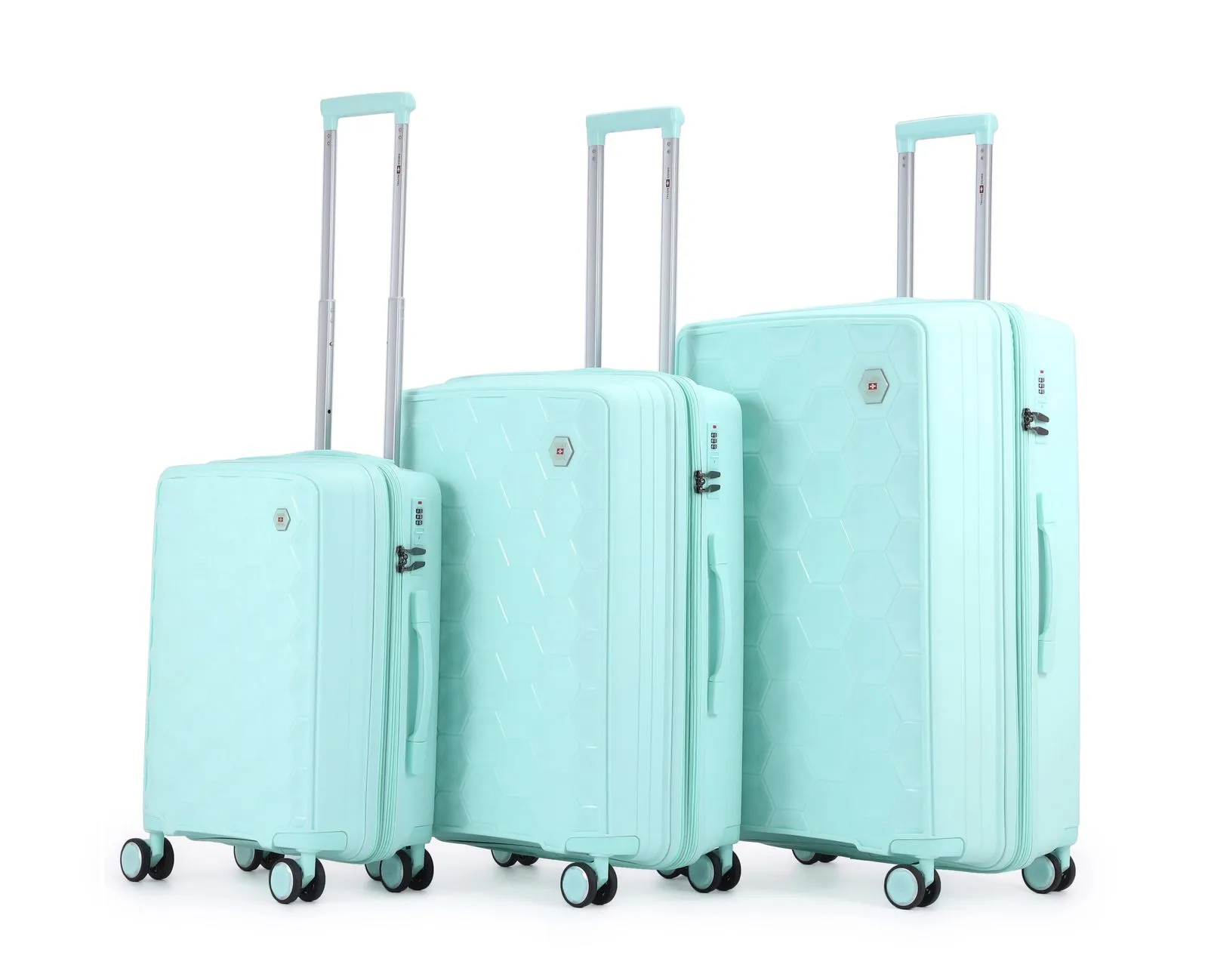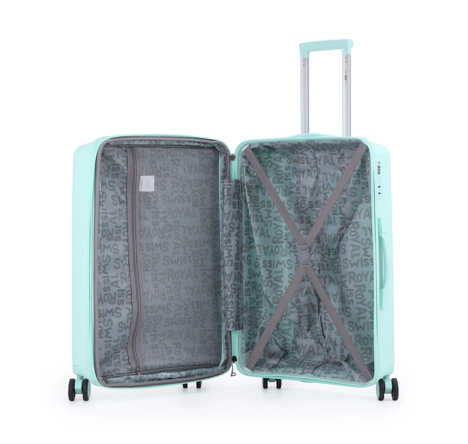 סט מזוודות קשיחות בלתי שבירות 20/24/28 אינץ' Swiss Royal Porto – תיק איפור במתנה צבע מנטה