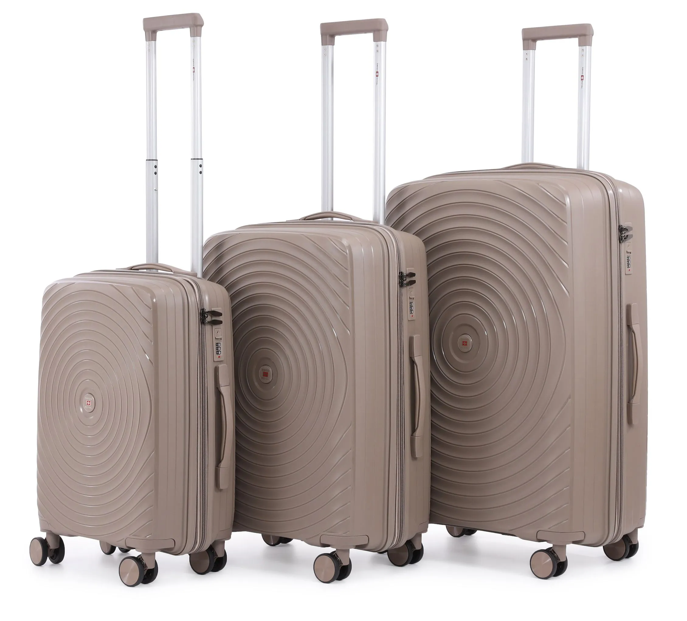 סט מזוודות קשיחות בלתי שבירות 3 יח' Swiss Royal Bali בצבע שמפנייה – גדלים 20/24/28 אינץ