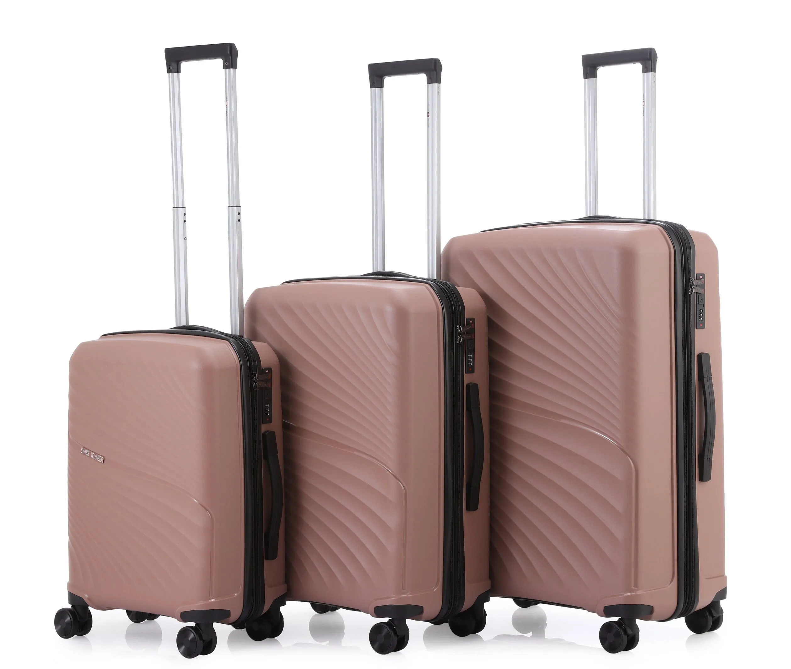 סט מזוודות קשיחות בלתי שבירות 3 יח' Swiss Voyager New York 28/24/20 בצבע רוז גולד