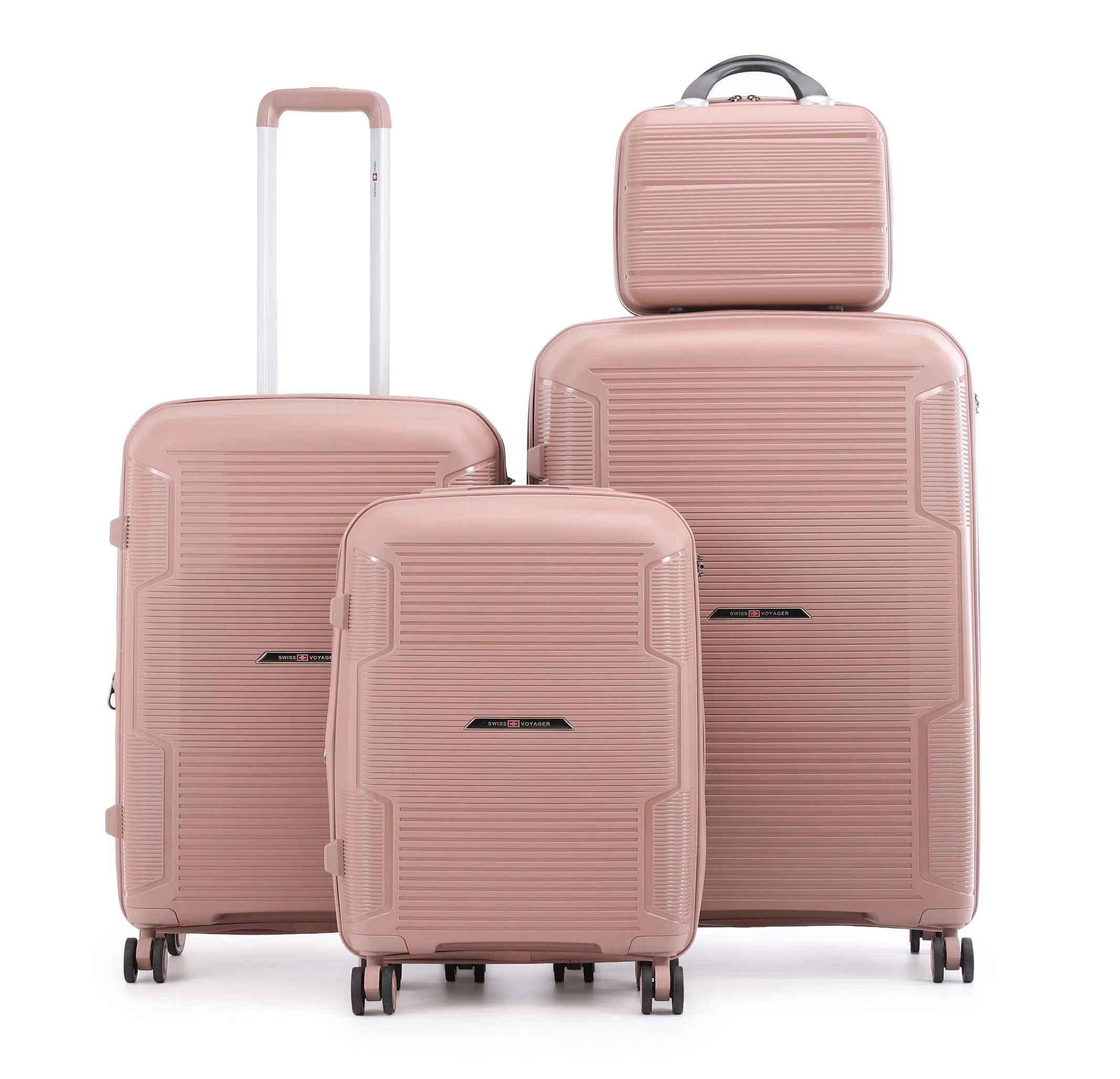 סט מזוודות קשיחות בלתי שבירות 4 יח' 28/24/20/14 Swiss Brazil בצבע רוז גולד