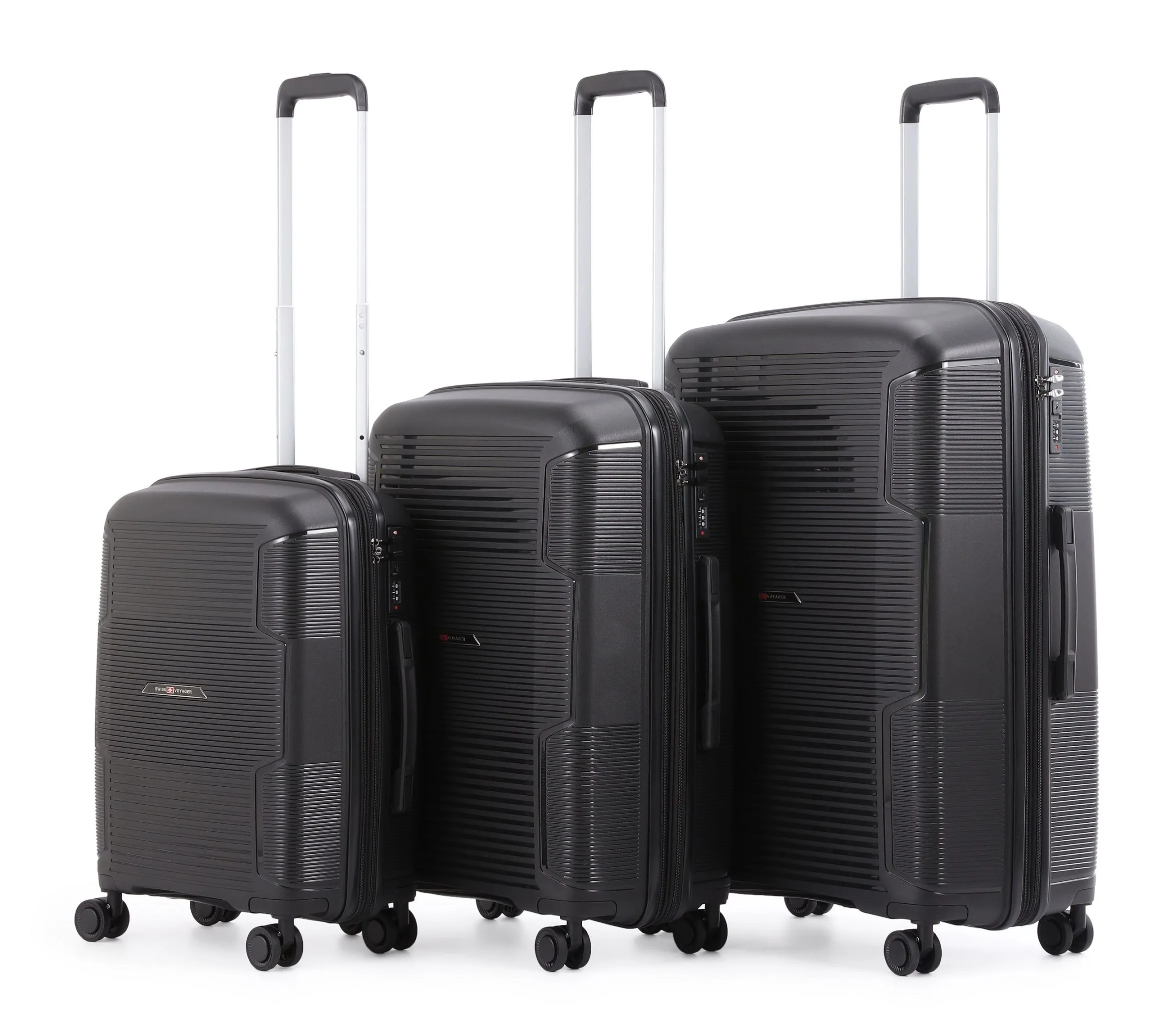 סט מזוודות קשיחות 3 יח' 20/24/28 + תיק איפור 14 אינץ' מבית Swiss Voyager
