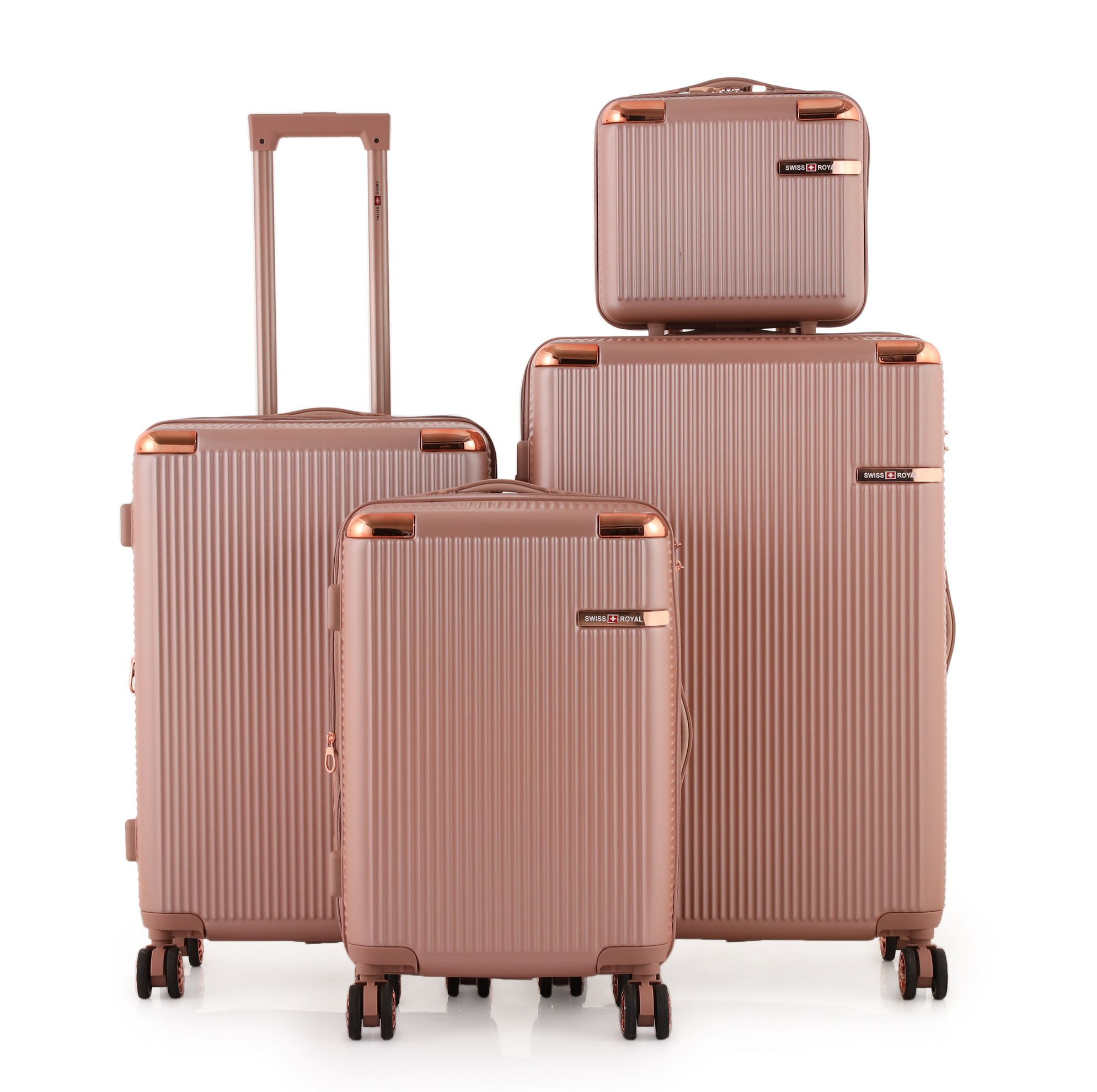 סט מזוודות קשיחות יוקרתי בצבע רוז גולד 3 יח` |30|26|20 אינץ' Swiss Toronto ותיק איפור מתנה