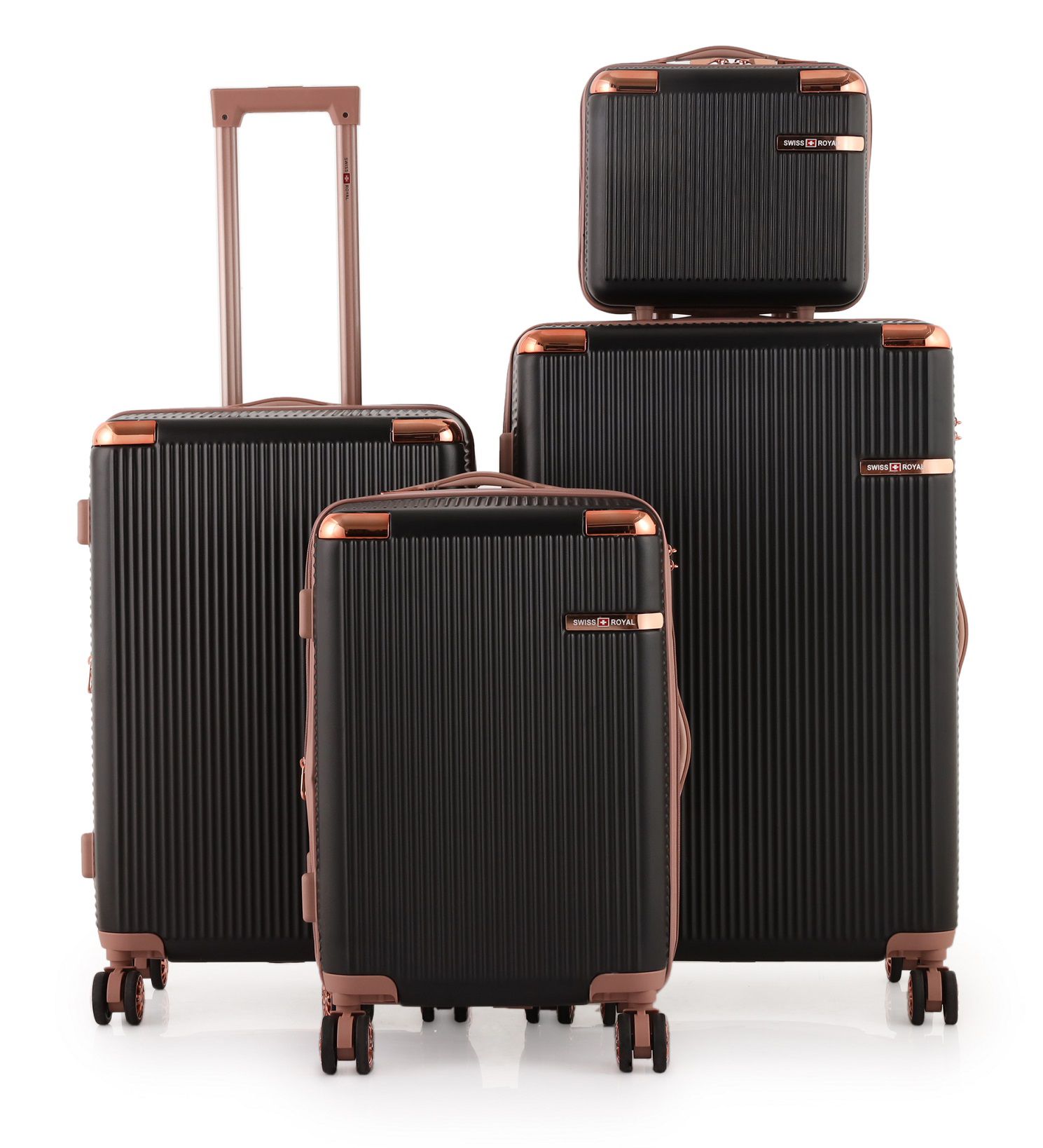 סט מזוודות קשיחות יוקרתי בצבע שחור 3 יח` |30|26|20 אינץ' Swiss Toronto ותיק איפור מתנה