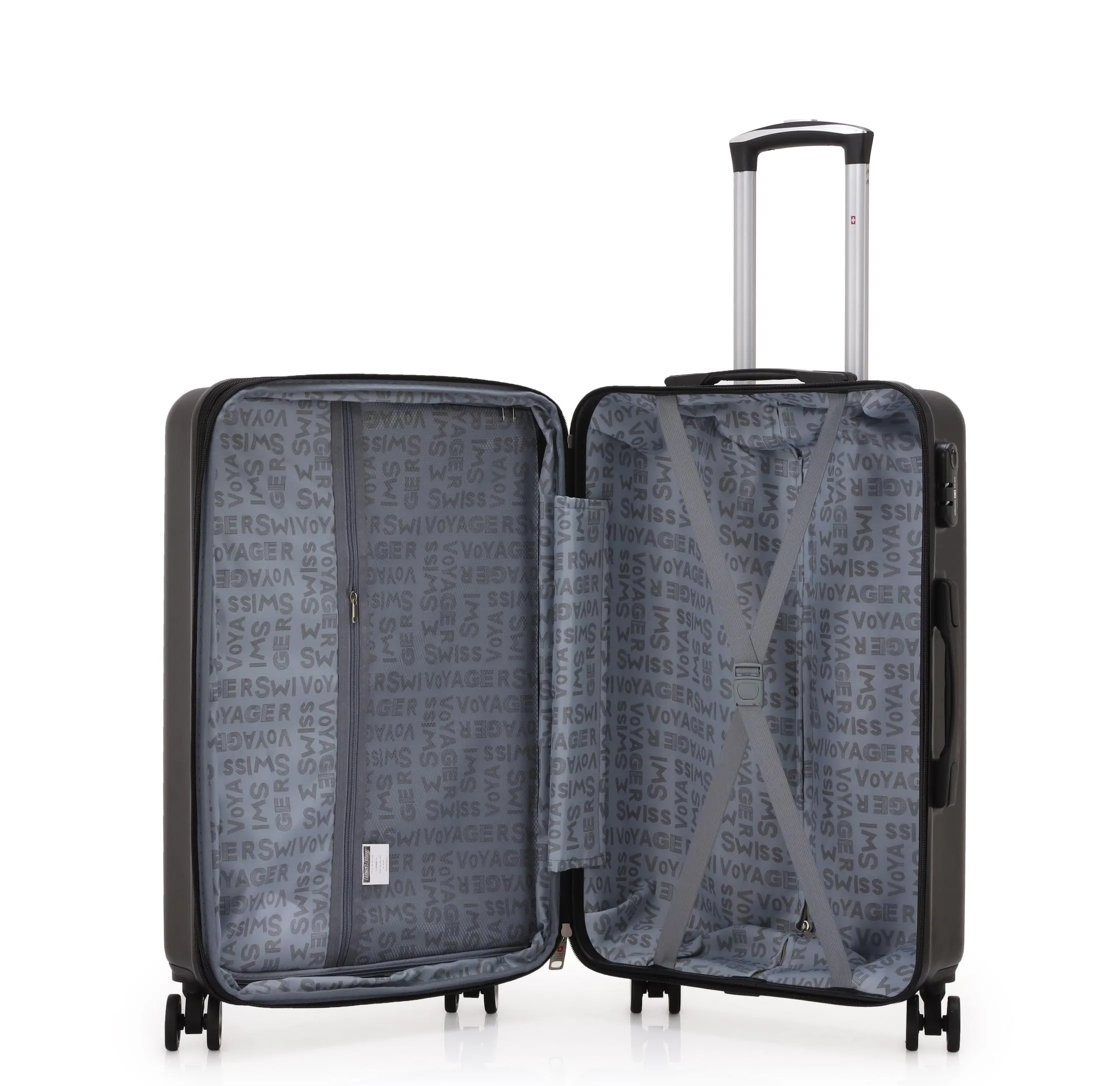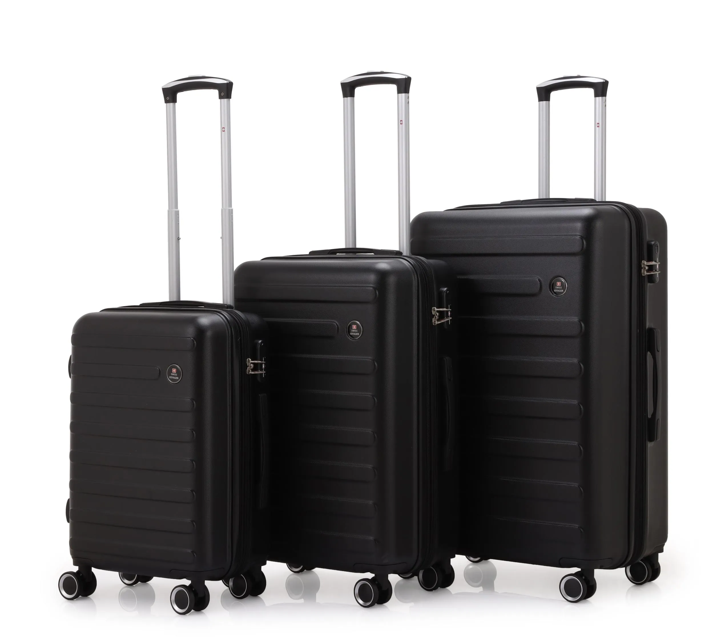 סט מזוודות קשיחות 20/24/28 אינץ' Swiss Vegas כולל תיק איפור במתנה בצבע שחור