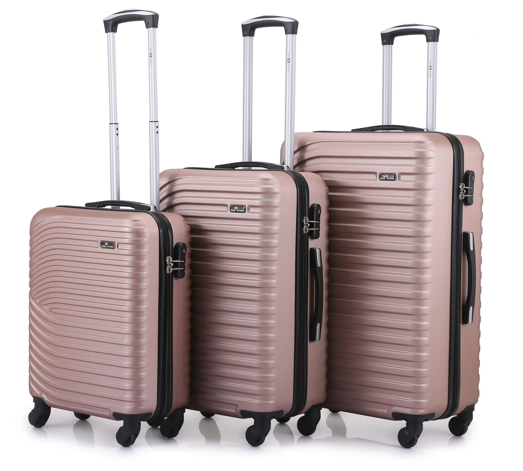 סט מזוודות קשיחות 3 יח /28/24/20 Swiss Voyager Torrino בצבע רוז גולד