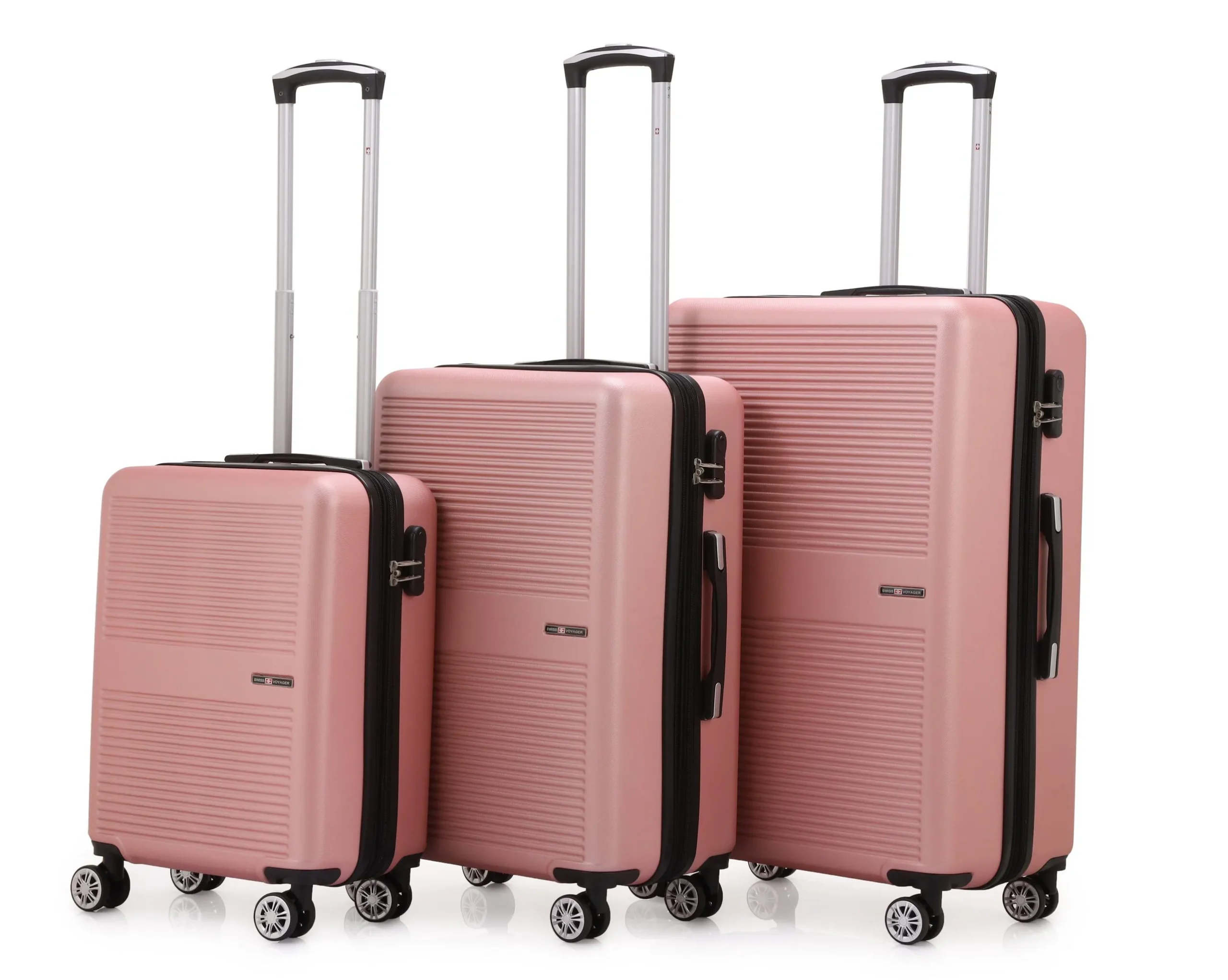 סט מזוודות קשיחות 4 יח' /28/24/20/14 אינטש Swiss Voyager Bronx בצבע רוז גולד