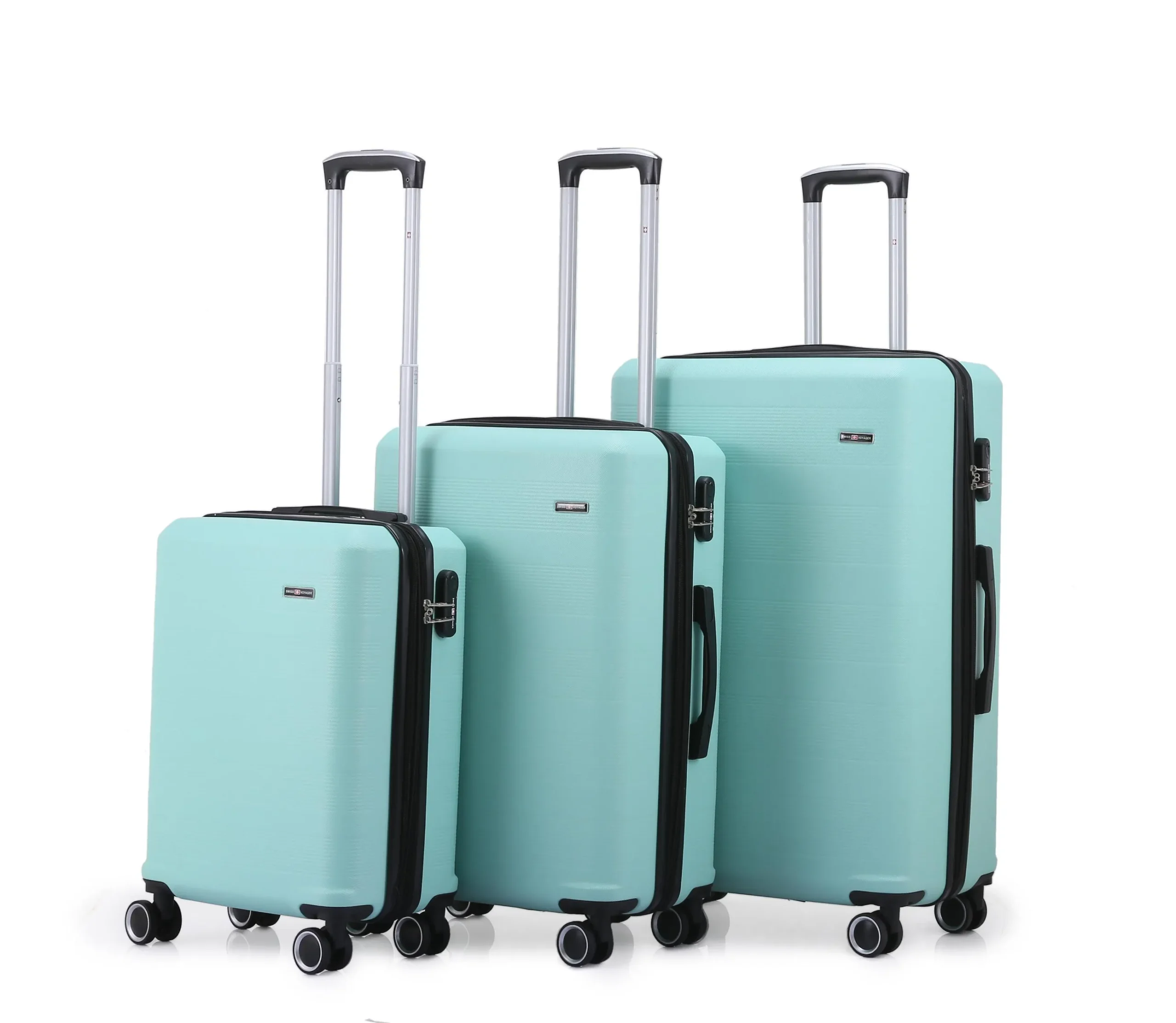 סט מזוודות קשיחות Swiss Madrid מבית Swiss Voyager כולל 4 יחידות בגדלים שונים: 28, 24, 20, ו-14 אינטש. המזוודות עשויות מחומר ABS קל, קשיח וגמיש, ומגיעות עם ידית טרולי טלסקופית עם כפתור לחיצה לנוחות מירבית. יש בהן 4 גלגלי סיליקון כפולים רב-כיווניים (ספינר 360 מעלות) לתנועה חלקה וידיות עליונה וצידית לנשיאה נוחה.