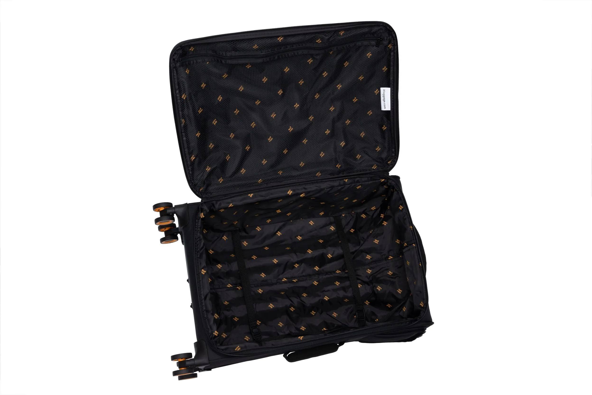 פנים המזוודה: מרופד, עם כיס רוכסן פנימי ורצועות הידוק לתכולה