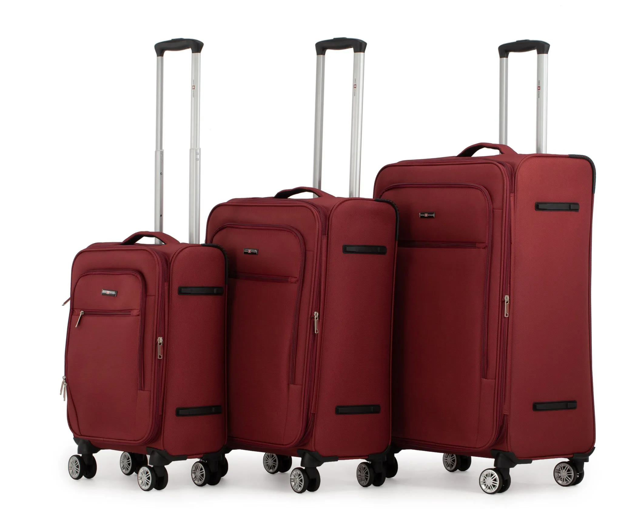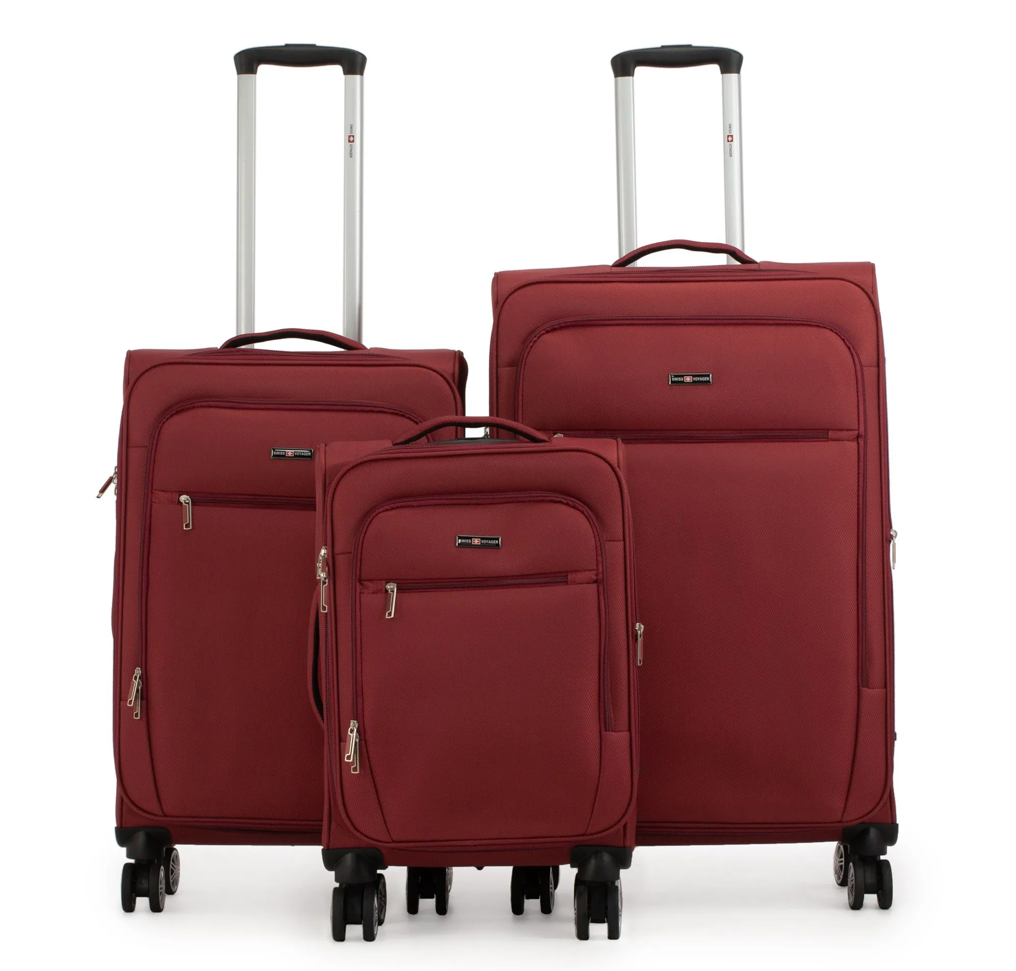 סט 3 מזוודות בד קלות 28| 24|20 אינץ' Swiss Voyager Alpine צבע בורדו