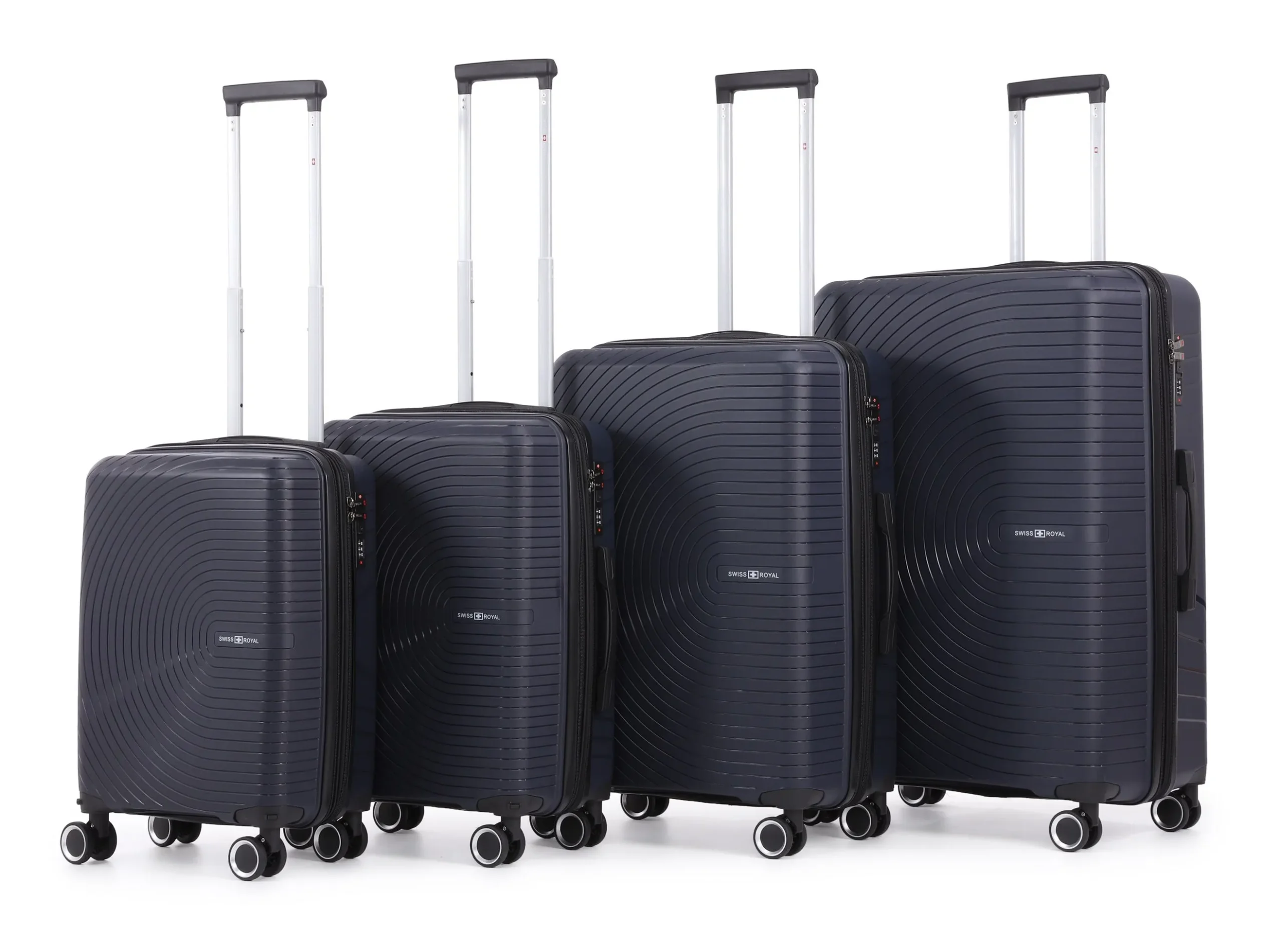 סט 4 מזוודות קשיחות בלתי שבירות 30/25/21/19 Swiss Royal דגם Miami בצבע נייבי