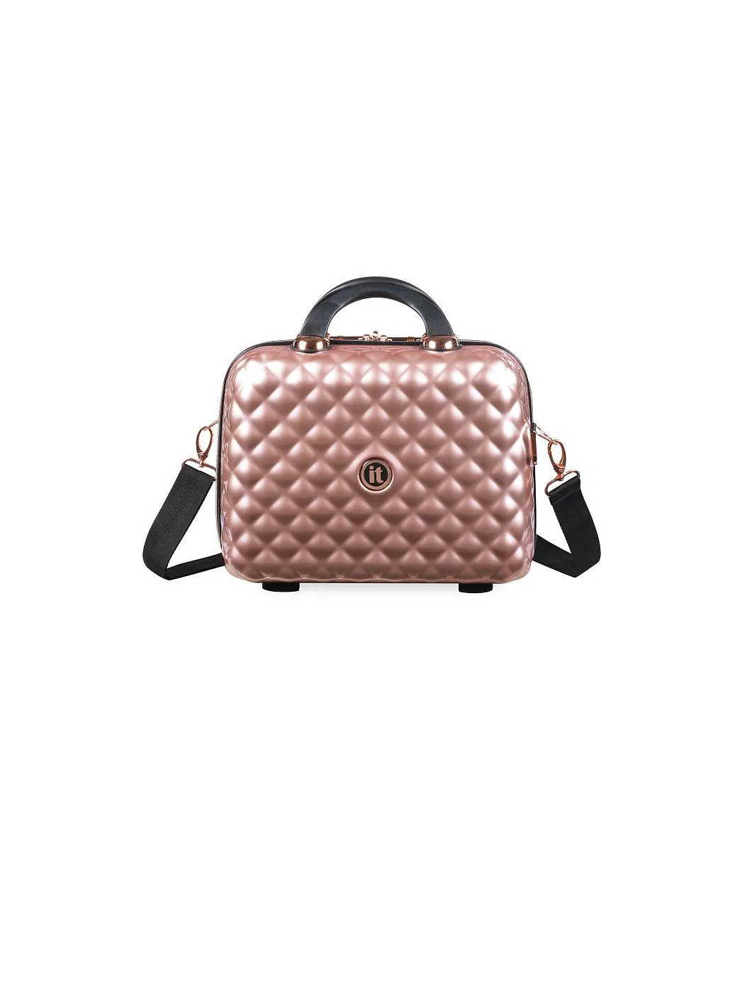 סט 5 מזוודות יוקרה בלתי שבירות Glitzy מבית IT Luggage – חלקים בגדלים 32″ / 28″ / 24″ / 20″ + תיק איפור תואם צבע רוז