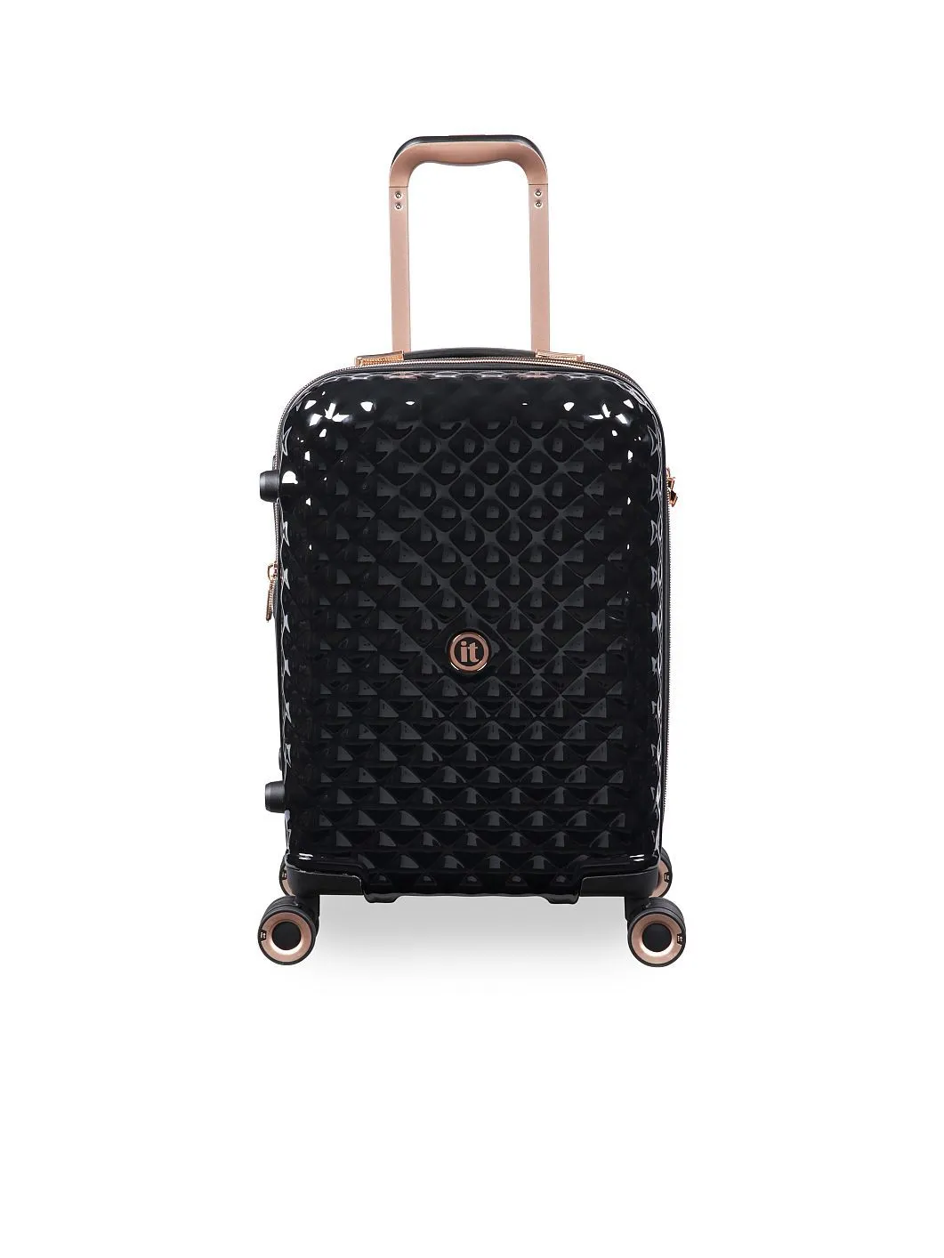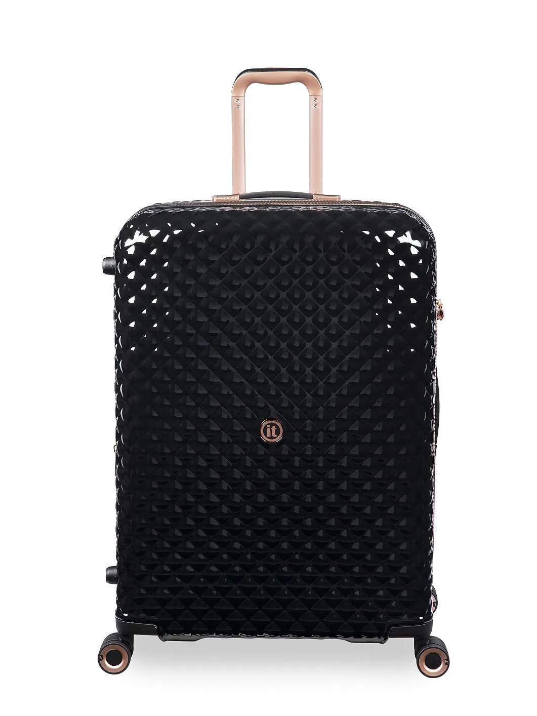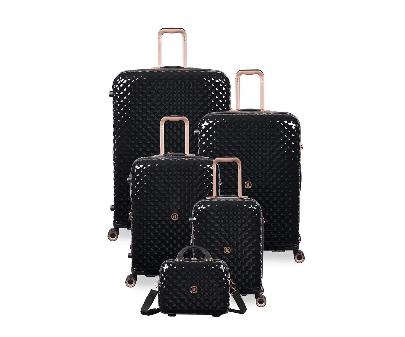 סט 5 מזוודות יוקרה בלתי שבירות Glitzy מבית IT Luggage – חלקים בגדלים 32″ / 28″ / 24″ / 20″ + תיק איפור תואם צבע רוז גולד מטאלי